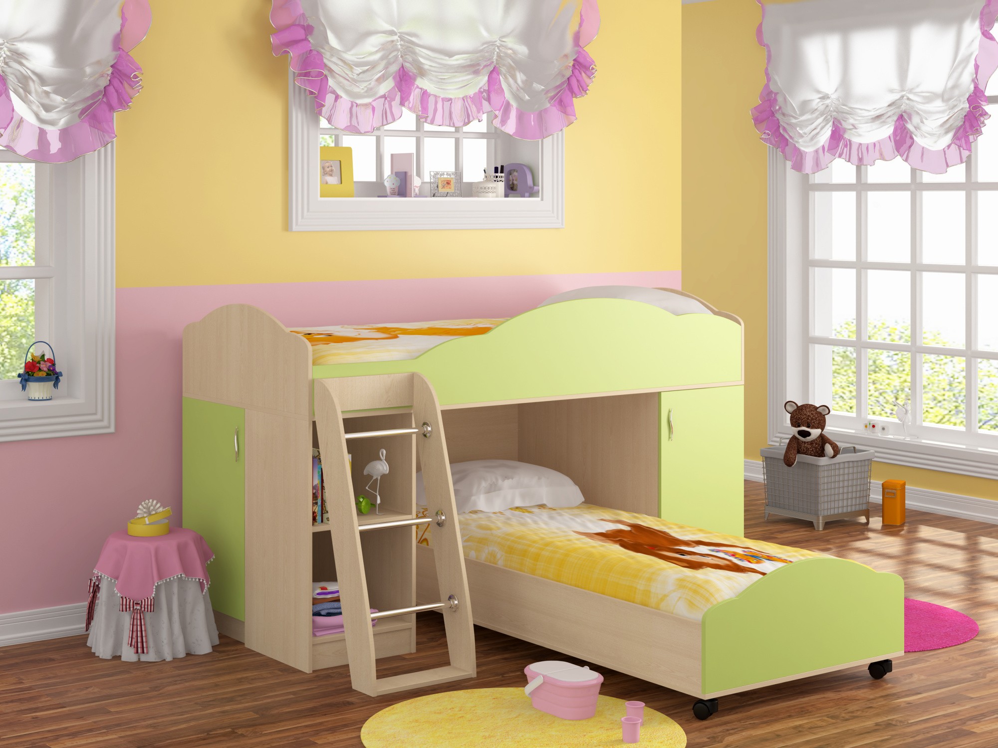 Отзывы о Столплит Кровать двухъярусная "Дюймовочка 5.1" (Дуб молочный) Салатовый