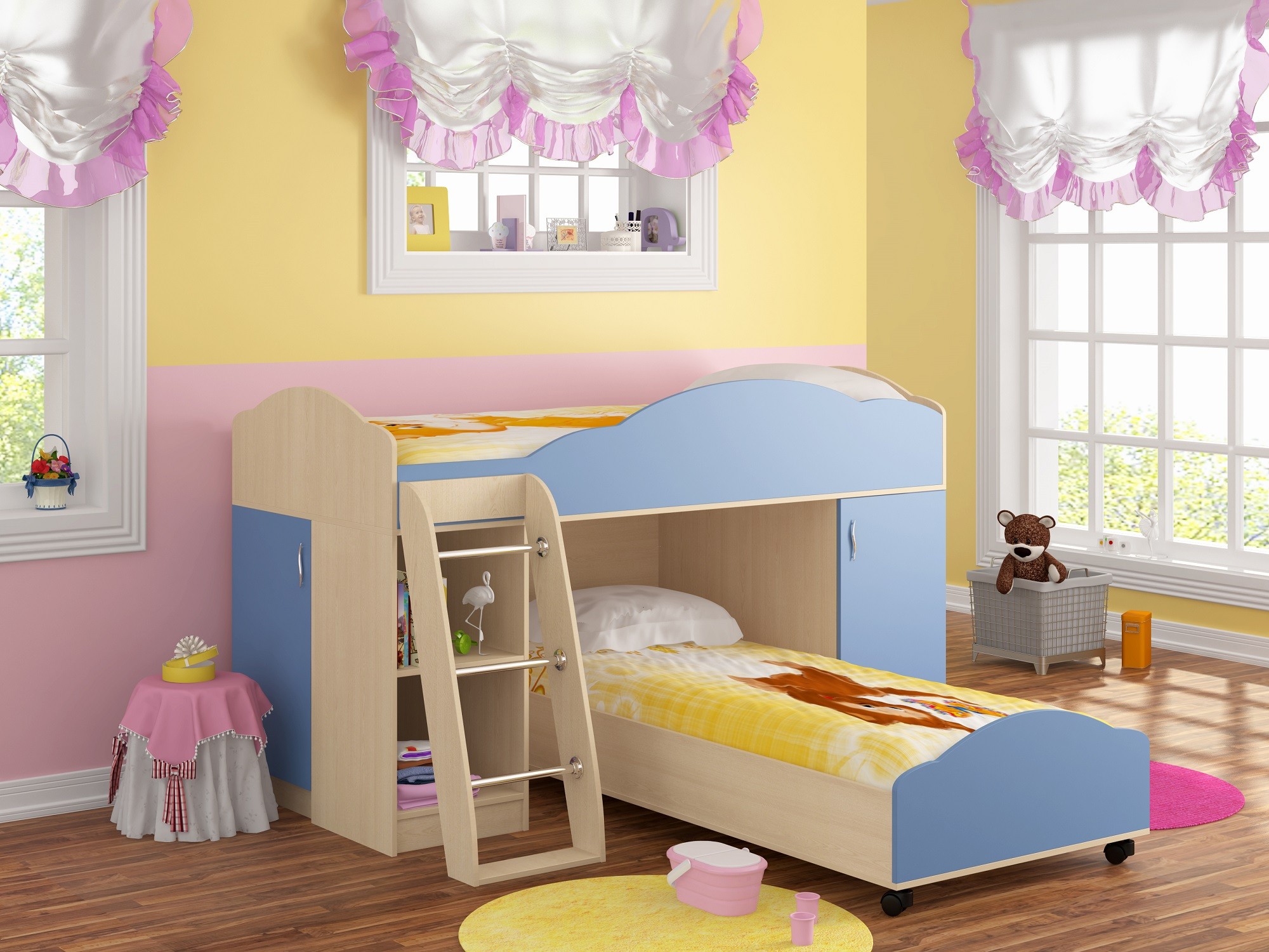 Отзывы о Столплит Кровать двухъярусная "Дюймовочка 5.1" (Дуб молочный) Голубой
