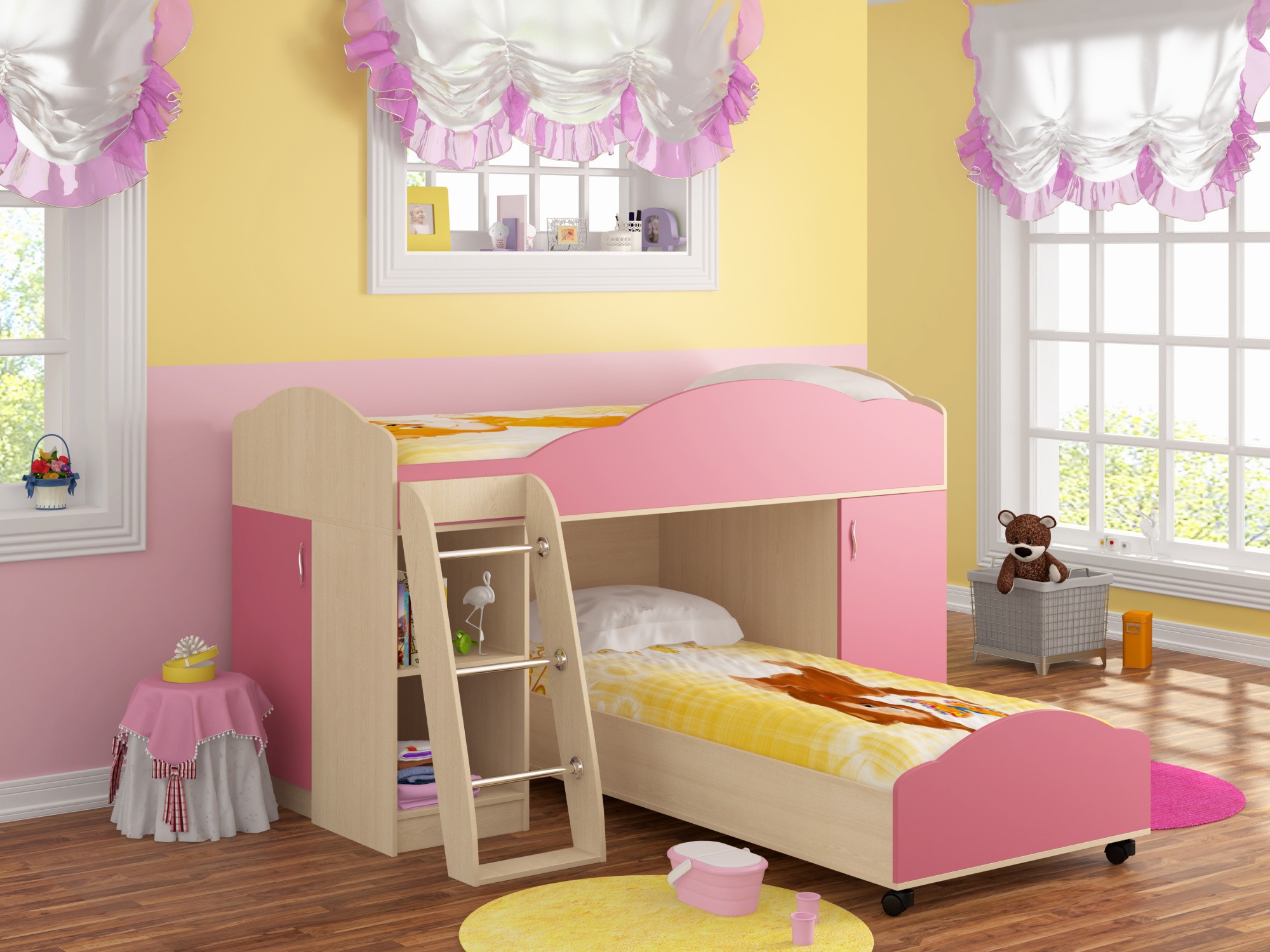 Отзывы о Столплит Кровать двухъярусная "Дюймовочка 5.1" (Дуб молочный) Розовый