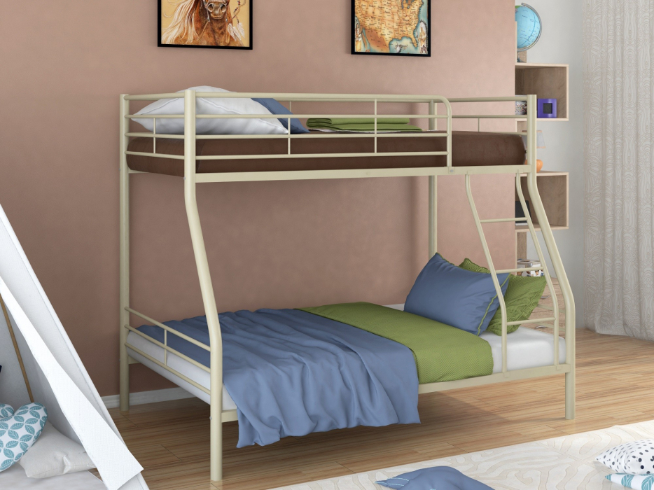 Кровать выполнена из металла с качественным порошковым покрытием. Облегченная конструкция нашей мебели позволяет сделать интерьер менее загруженным, что очень важно при формировании небольших пространств. Кровать выдерживает повышенные нагрузки на спальные места до 180 кг. Простота сборки сделает вашу покупку еще приятнее. Размер верхнего спального места 90*190, нижнего спального места 120*190.