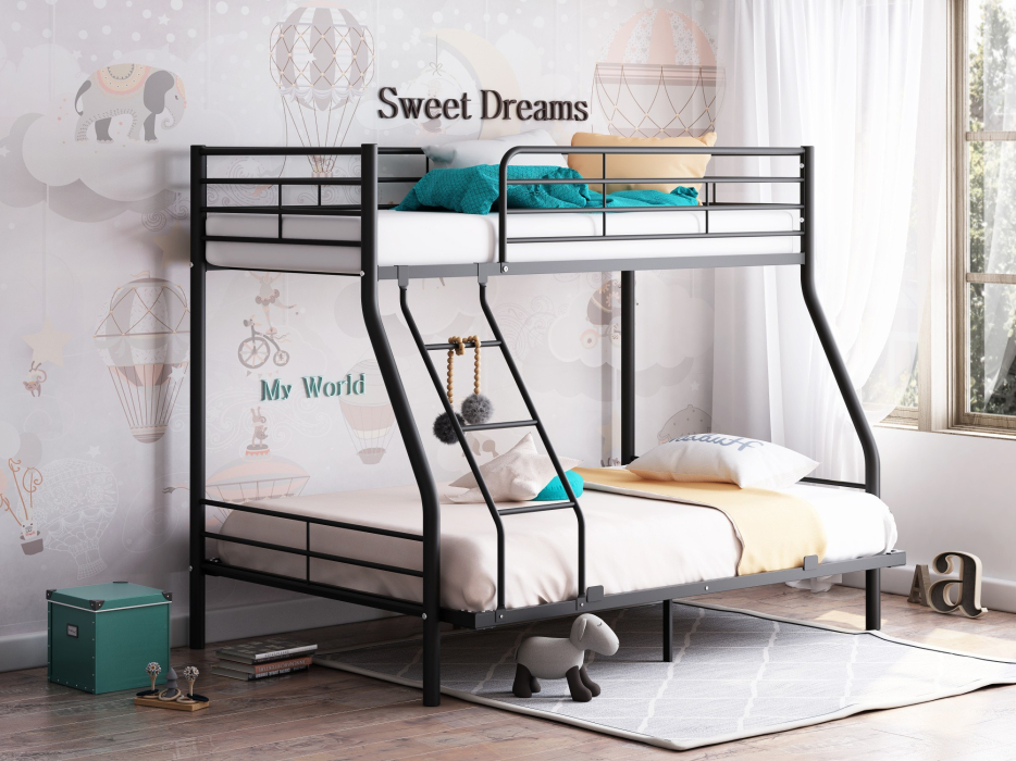 Кровать выполнена из металла с качественным порошковым покрытием. Облегченная конструкция нашей мебели позволяет сделать интерьер менее загруженным, что очень важно при формировании небольших пространств. Кровать выдерживает повышенные нагрузки на спальные места до 180 кг. Простота сборки сделает вашу покупку еще приятнее. Размер верхнего спального места 90*190, нижнего спального места 140*190.