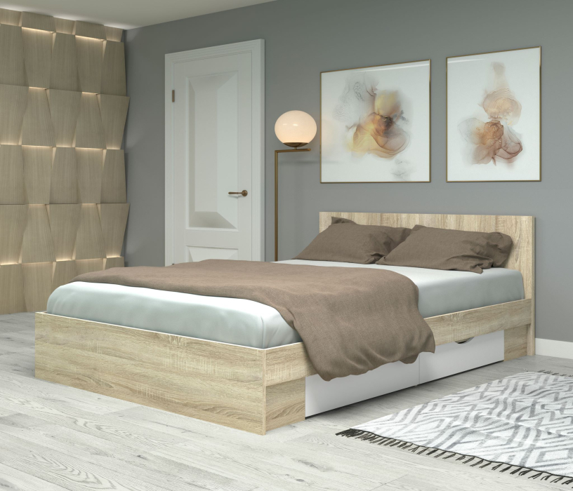 Отзывы о Столплит Кровать Фреш с ящиками КРФР 3-Я-1400 Дуб сонома светлый/Белый