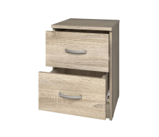 Неотъемлемый атрибут спальни – прикроватная тумбочка. Серия «Фреш» предлагает три вида исполнения -ящик полка, два ящика, дверка две полки. Выполнен из ЛДСП 16мм, кромка ПВХ видимые 2мм, невидимые 0,4мм, ручки металл. Система выдвижения, роликовые направляющие, за дополнительную плату возможна установка шариковых направляющих.