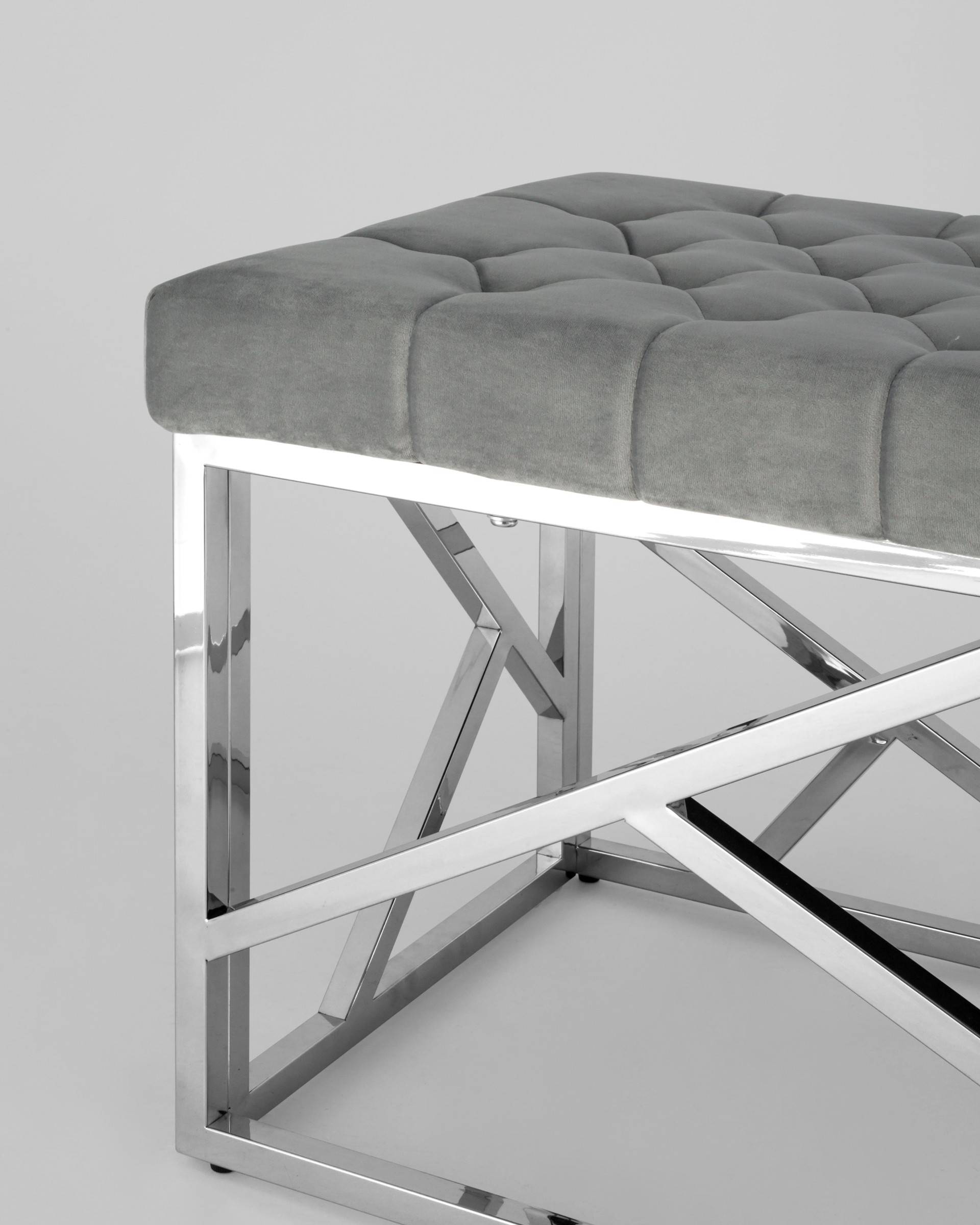 Банкетка выполнена из нержавеющей стали, что делает конструкцию прочной и надежной. Обивка сиденья - велюр. Материал обладает особой прочностью и износоустойчивостью, приятный на ощупь, эластичный и теплый.