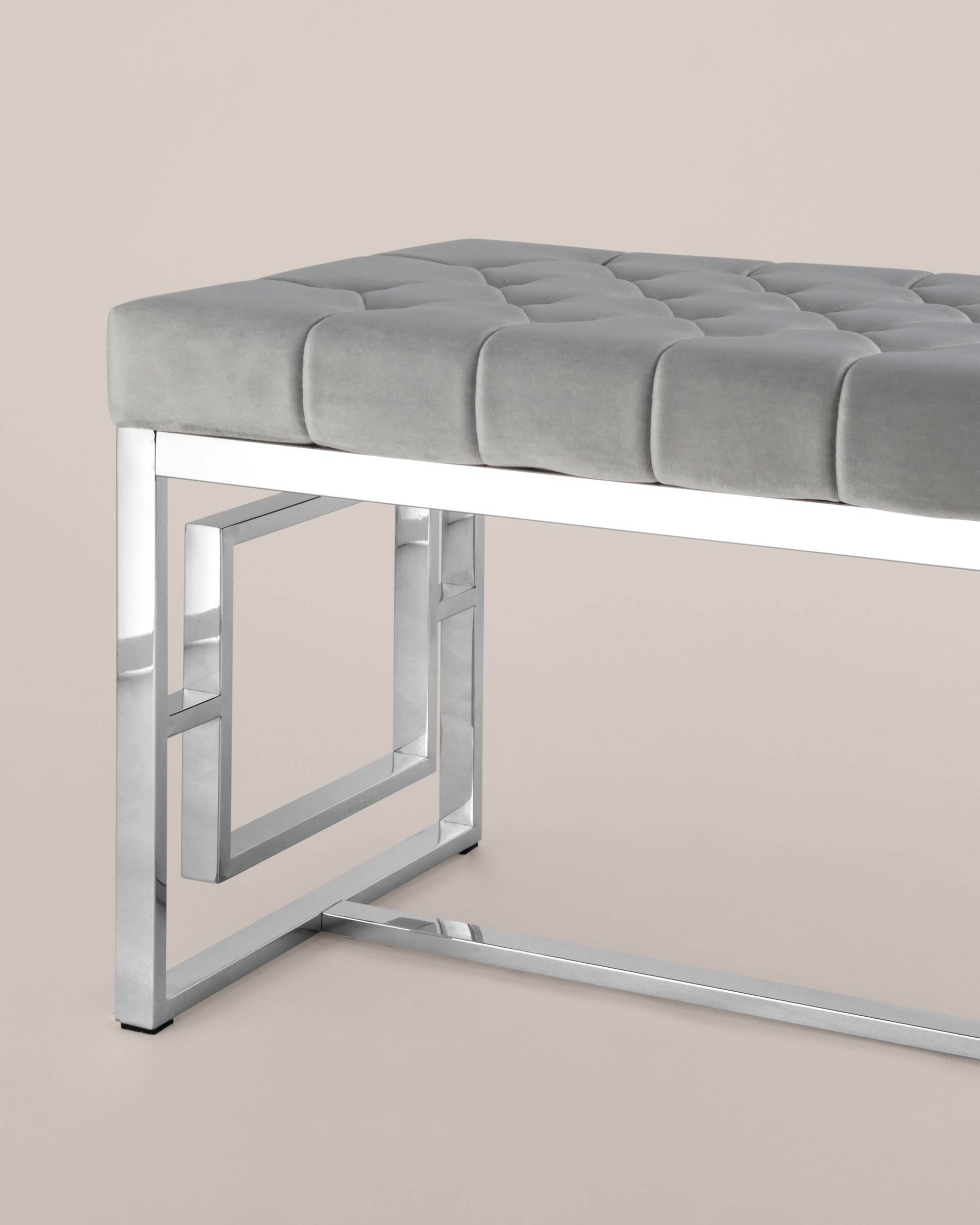 Банкетка выполнена из нержавеющей стали, что делает конструкцию прочной и надежной. Обивка сиденья - велюр. Материал обладает особой прочностью и износоустойчивостью, приятный на ощупь, эластичный и теплый.