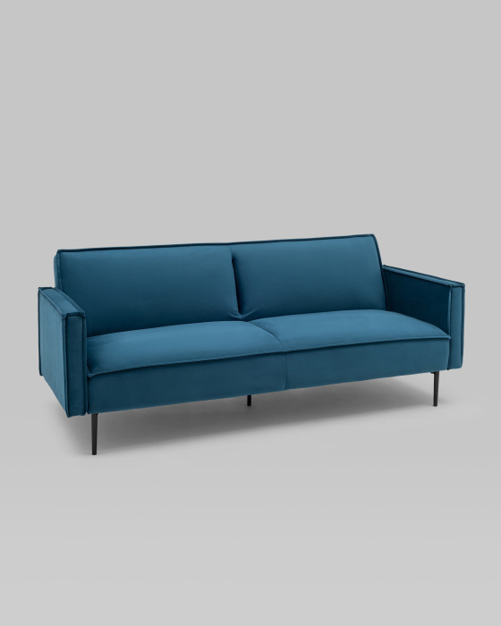 Прямой диван на металлических ножках средней жесткости. Спальное место: 1880х1110 мм. Посадочные места: 3 шт. Без ящика для белья. Максимальная нагрузку 240 кг.