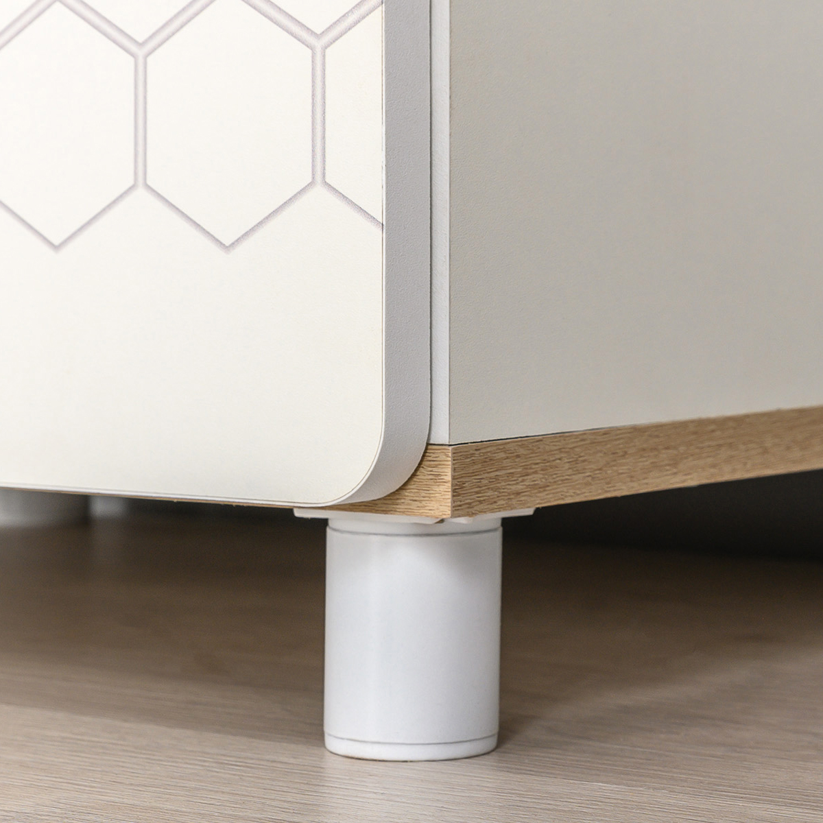 Cистема хранения комода предствлена тремя выдвижными ящиками на шариковых направляющих полного выдвижения. На фасадах скандинавские геометрические мотивы универсального цветового решения делают эту мебель подходящей и девочкам, и мальчикам. Опоры - регулируемые, что позволяет легко компенсировать неровности пола. Изготовлена мебель из экологически чистой ламинированной ДСП 16 мм, торцы окромлены ПХВ плёнкой. Толстая кромка — все выступающие части кровати закрыты прочной и безопасной кромкой толщиной 2 мм. Лицевая фурнитура - минималистичные пластиковые ручки. В производстве использованы качественные материалы и фурнитура - можно разрабатывать проект на весь период обучения. Выдвижные ящики на шариковых направляющих полного выдвижения обеспечивают длительную и тихую эксплуатацию. Поставляется в разобранном виде в надёжной упаковке, с комплектом сборочной фурнитуры и инструкцией по сборке.