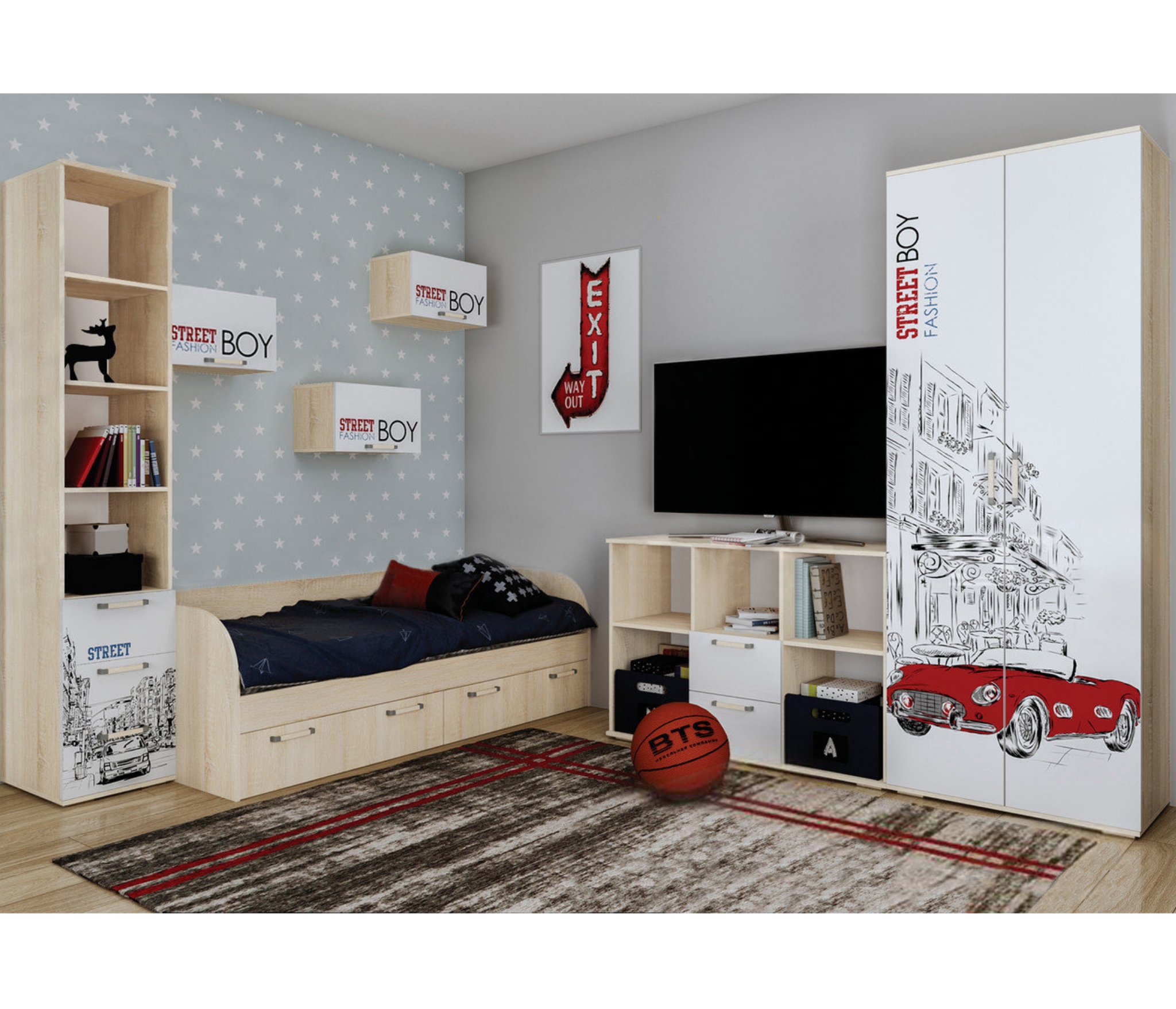Шкаф для одежды с комодом три ящика и стеллаж Эйп - современная и уютная мебель для детской комнаты.