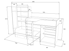 Двухъярусная кровать Лео представляет из себя полноценный комплект для детской комнаты. Два полноценных спальных места помогут хорошо выспаться и набраться сил. Удобный доступ к верхнему ярусу обеспечивается за счет надежной лестницы с металлическими ступенями. Развитая система хранения вещей данной кровати позволит разместить в своих недрах все необходимые вещи. Постельное белье с легкостью поместиться в ящики, расположенные под нижним ярусом. Так же кровать располагает платяным шкафом, высокой колонкой с полками и вместительной антресолью.