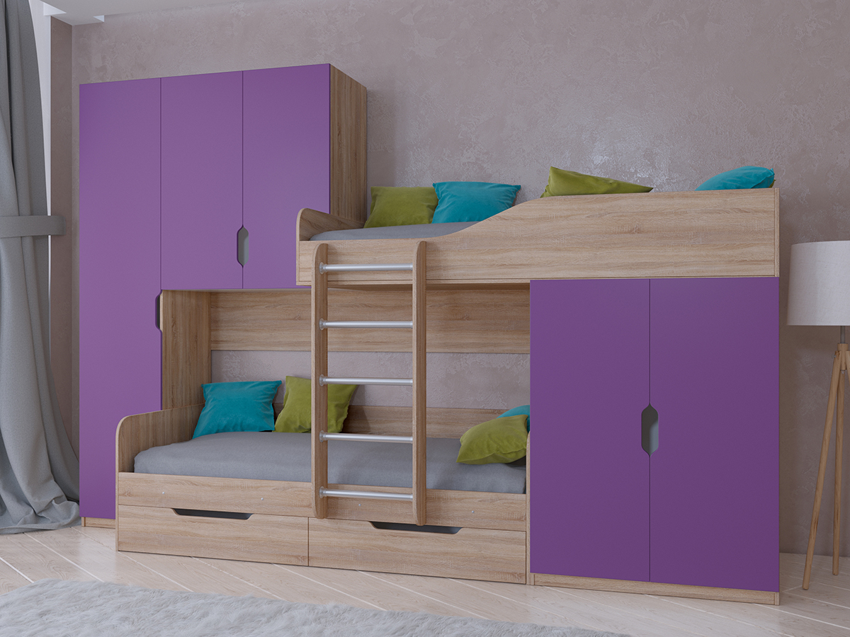 Отзывы о Столплит Кровать двухъярусная Лео Дуб Сонома Фиолетовый