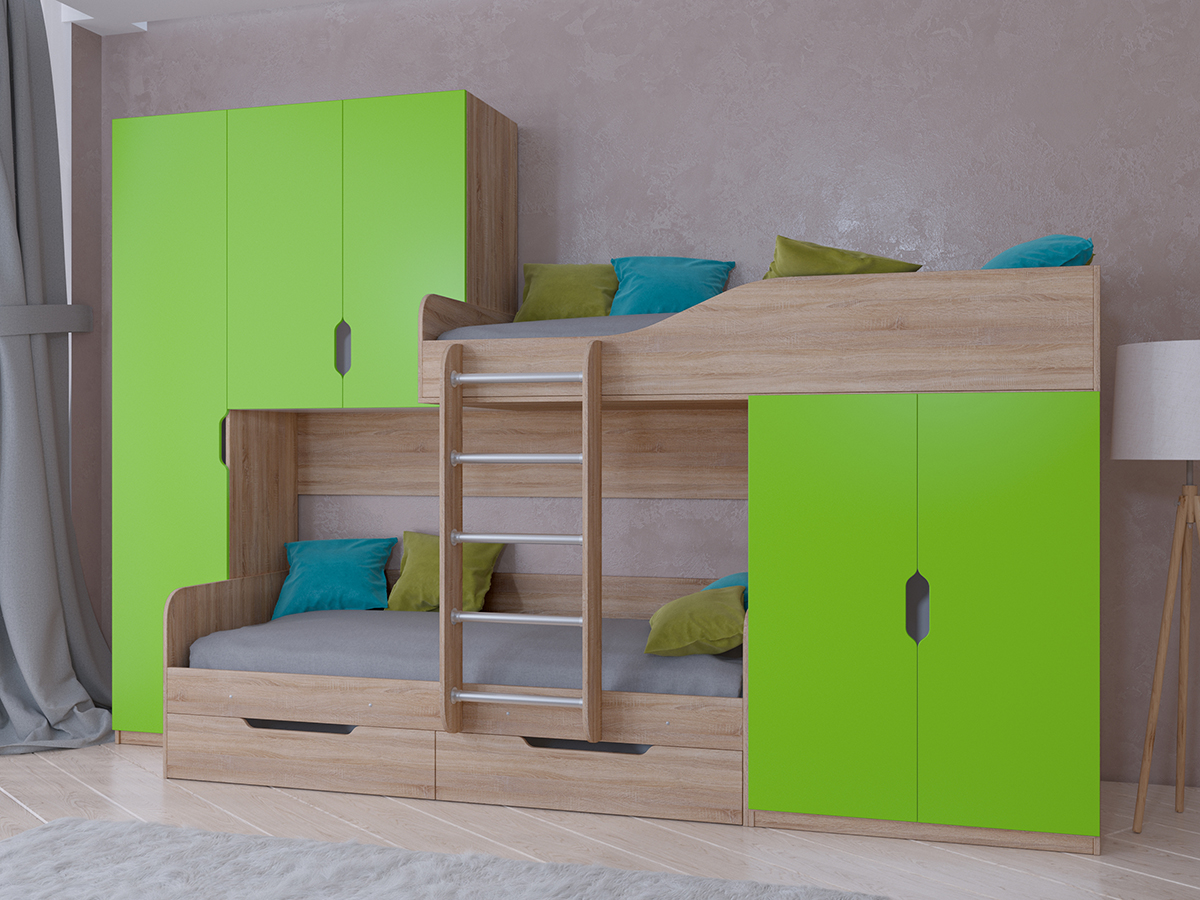 Отзывы о Столплит Кровать двухъярусная Лео Дуб Сонома Салатовый