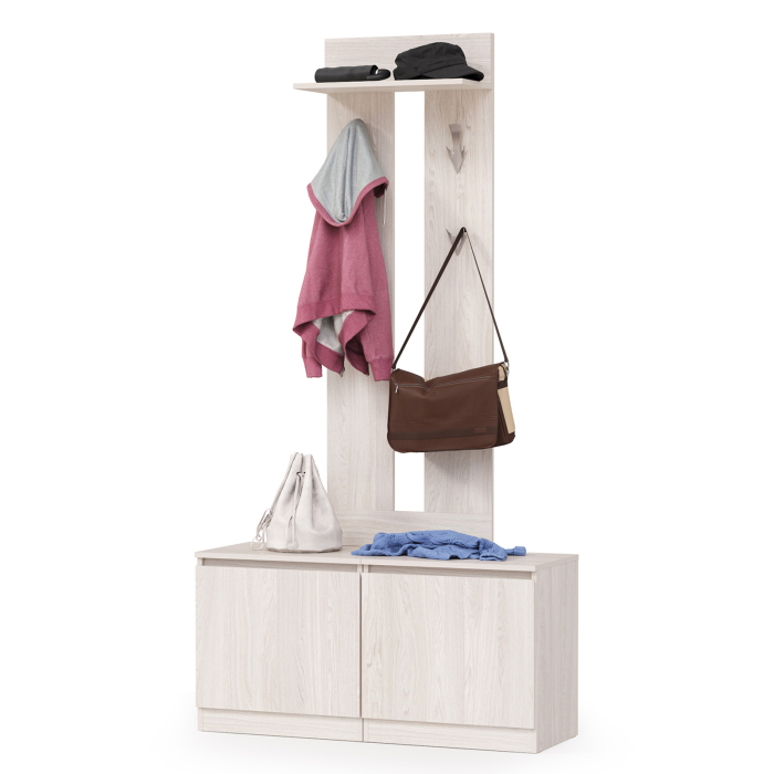 Две тумбы с одной вешалкой Ника - светлая и лёгкая мебель в утилитарном современном стиле.