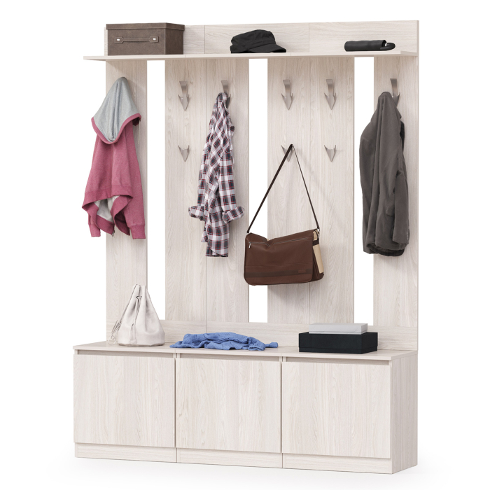 Три тумбы с вешалками для верхней одежды Ника - светлая и лёгкая мебель в утилитарном современном стиле.
