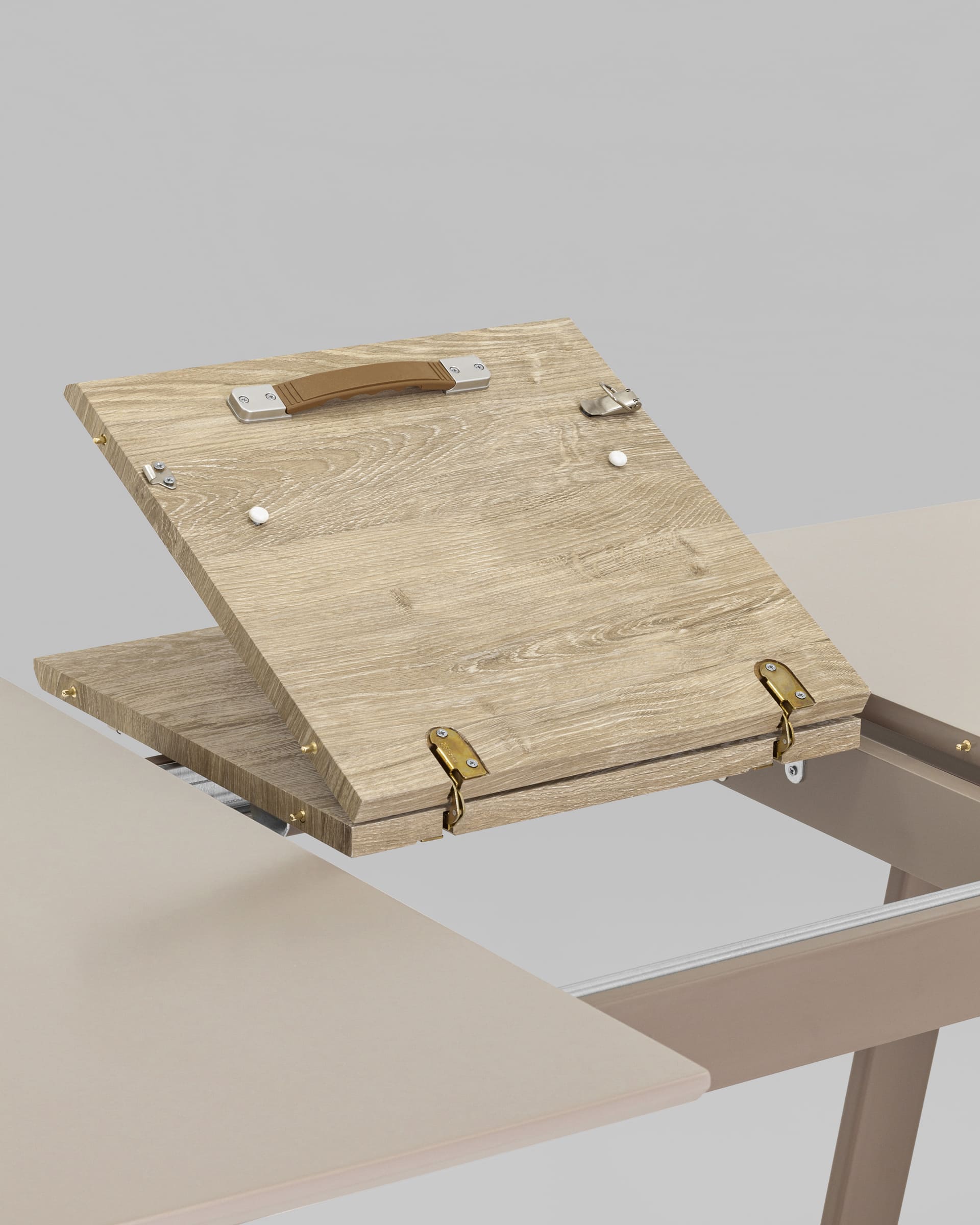 Дополнительная вкладка стола выполнена из МДФ с бумажным шпоном цвета беленого дуба.