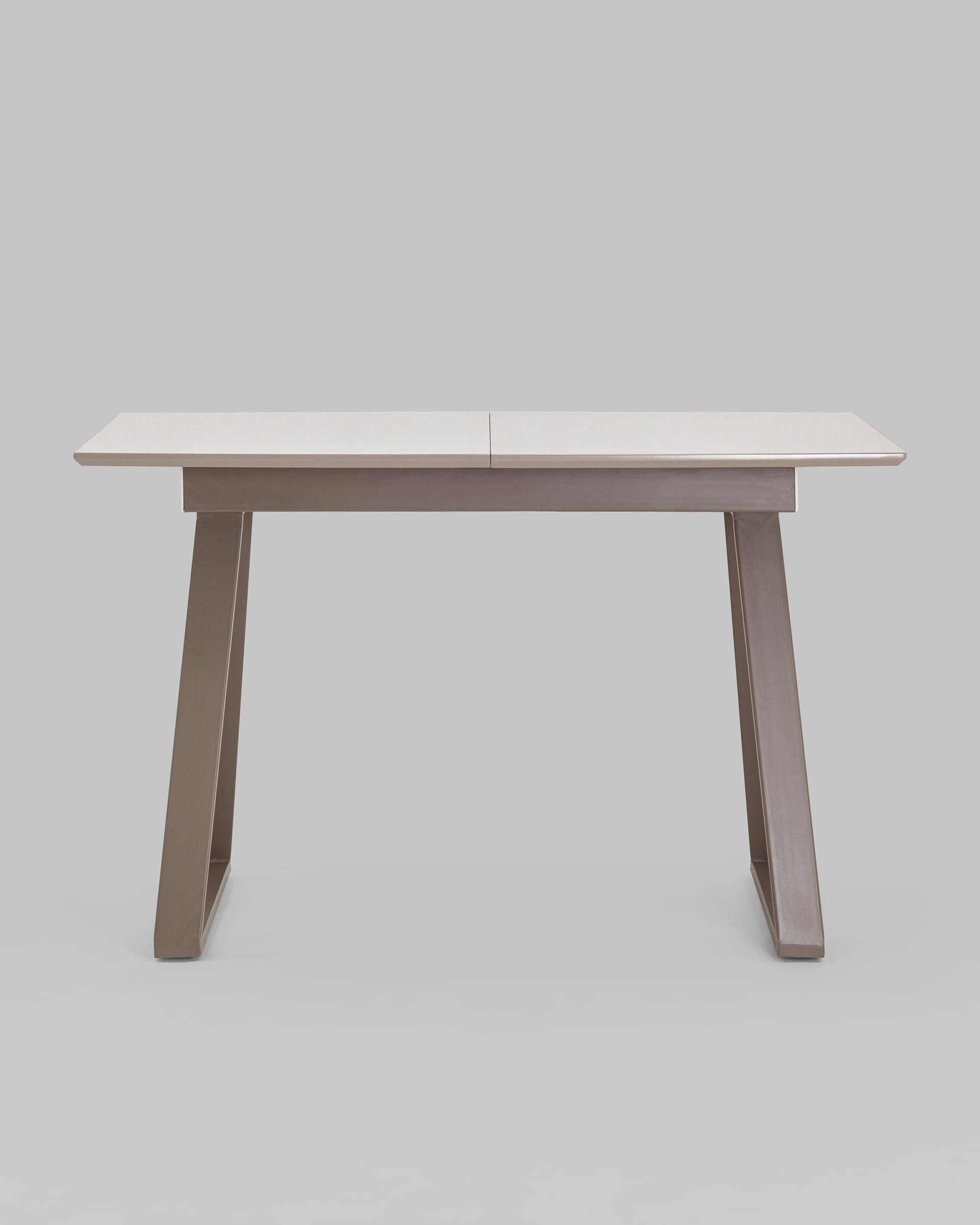 Столешница выполнена из прочного и долговечного МДФ. Бежевая глянцевая поверхность столешницы гармонично сочетается с металлическими ножками, окрашенными в один тон. Простая прямоугольная форма стола позволит легко вписать его в современный интерьер, стол украсит кухню, гостиную или современное кафе, ресторан.