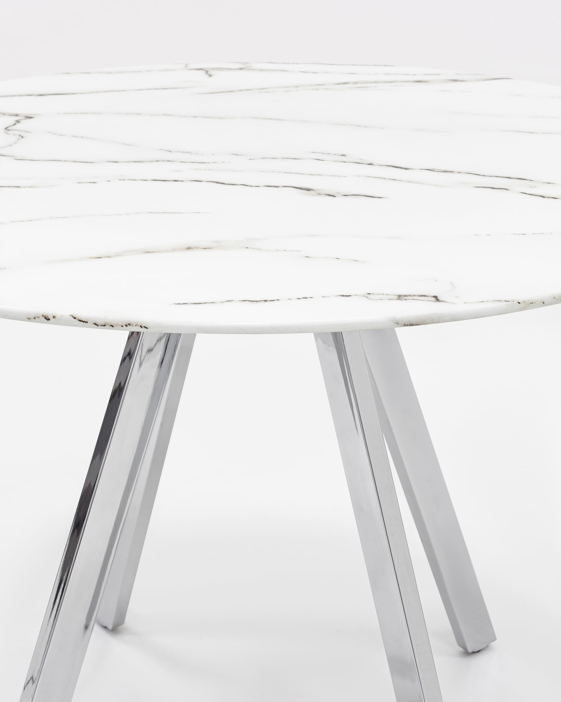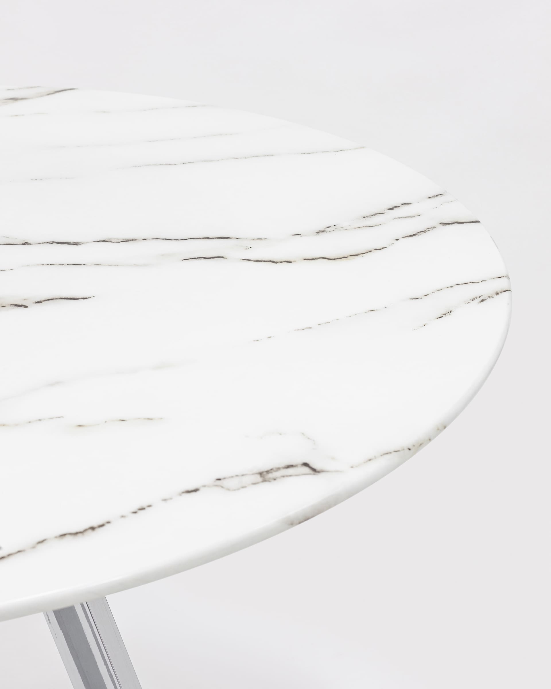 Столешница гармонирует с металлическими ножками оригинальной формы.