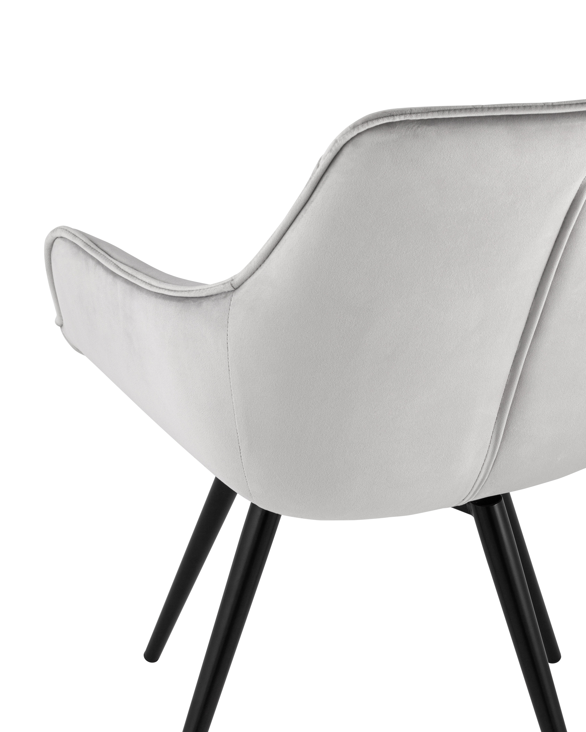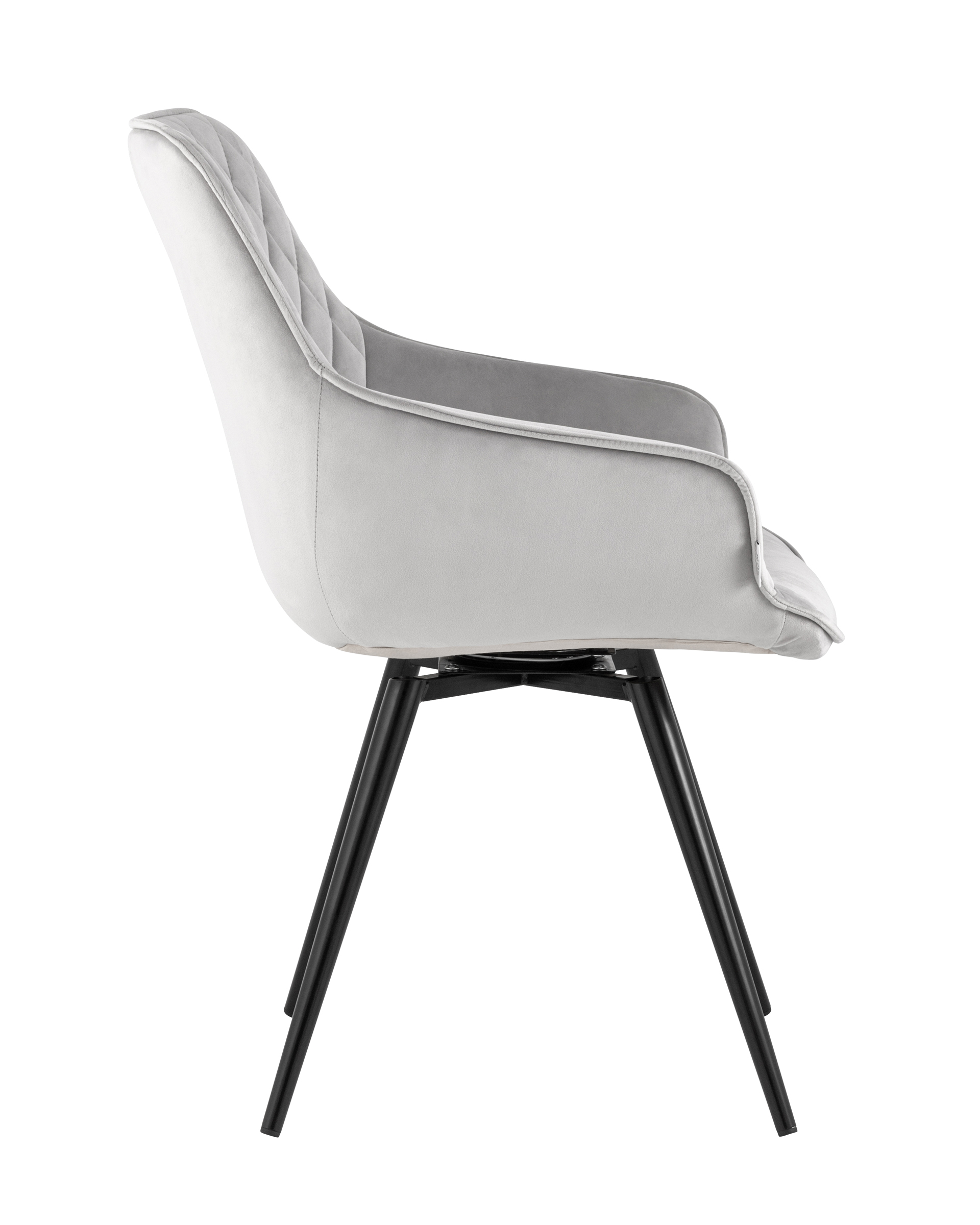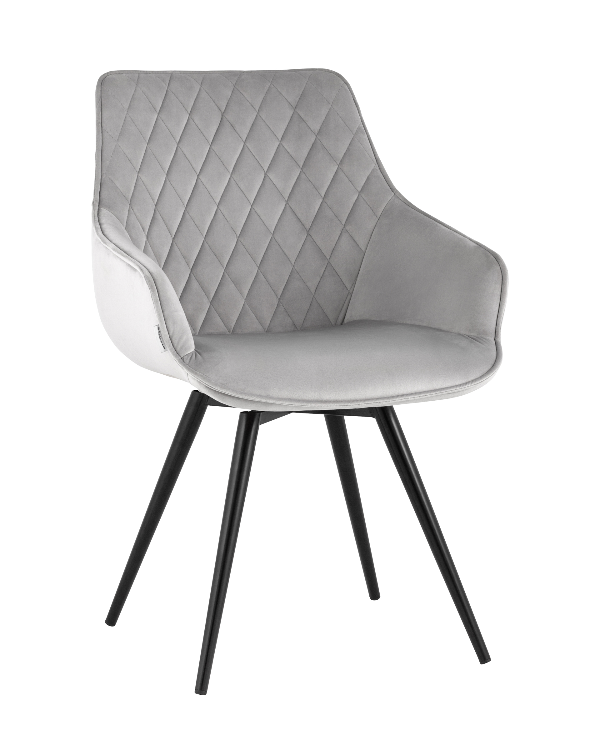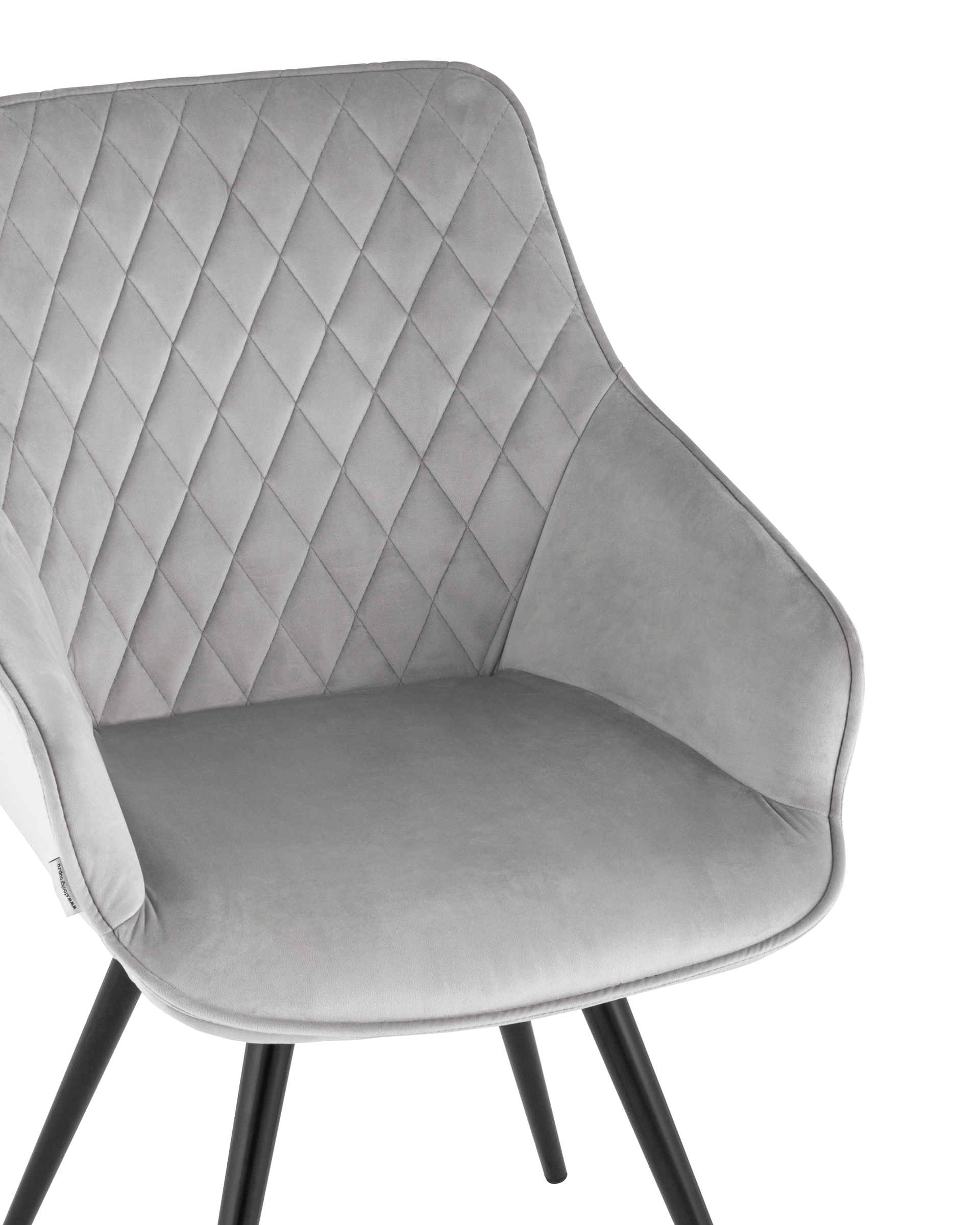 Стильный вращающийся стул Сеул станет прекрасным дополнением кухни, гостиной или рабочего места. Мягкая обивка выполнена из велюра - прочного, износостойкого и легкого в уходе материала. Внутренняя сторона спинки декорирована ромбовидной стежкой. Анатомическая форма сиденья и небольшие подлокотники обеспечивают максимальное удобство и комфорт. Металлические ножки выдерживают значительные нагрузки. Подпятники на ножках не испортят напольное покрытие и предохраняют от скольжения.