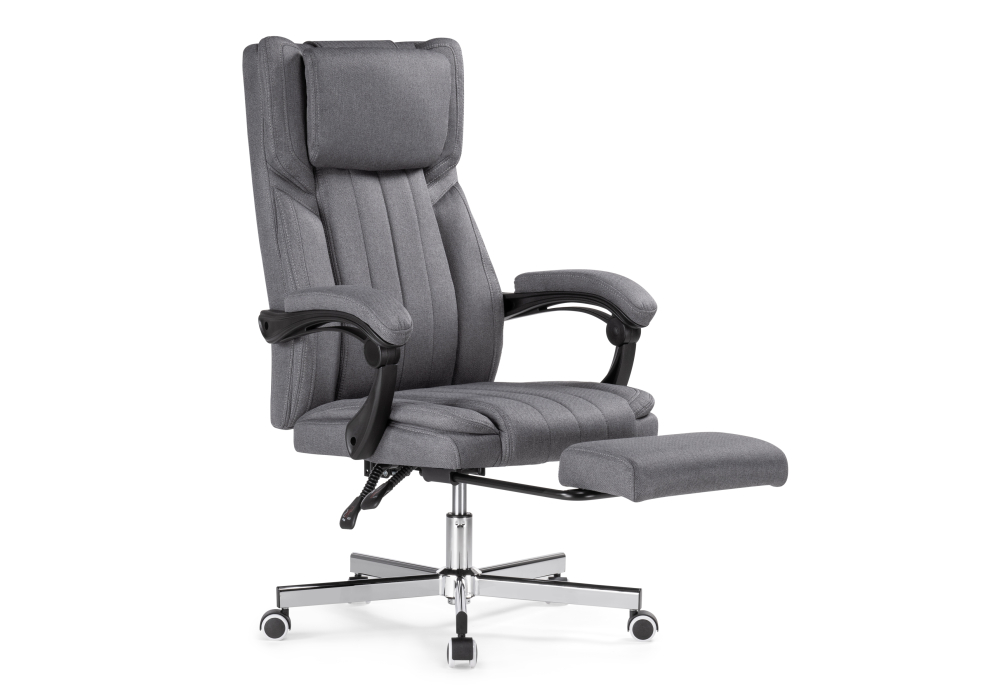 Диаметр крестовины: 68 см. Материал каркаса - Металл; Материал сиденья - Ткань; Материал ножек - Металл; Материал обивки - Ткань; Цвет каркаса - Хромированный металл; Цвет сиденья - Серый; Цвет ножек - Хромированный металл; Цвет обивки - Серый; Ширина - 65; Глубина - 63; Высота - 105; Ширина сиденья - 52; Глубина сиденья - 50; Высота сиденья - 40; Высота сиденья максимальная - 48; Высота максимальная - 113;