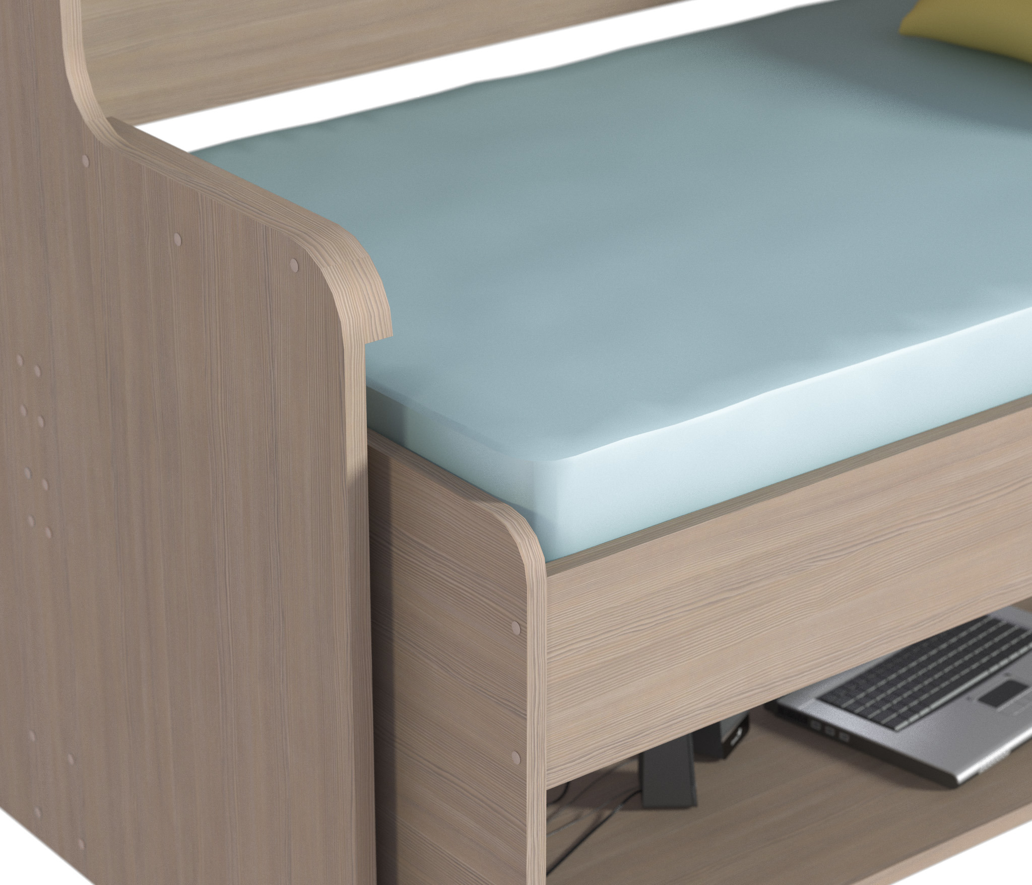 Ужасное качество спальной панели. Панель ДСП, после того, как ребенок 2 вечер собирался ложиться спать и начала забираться на кровать, эта панель проломилась. Дочке 12 лет и весит она не более 35 кг. Я бы не говорил об этом, если бы не произошло все в моем присутствие. Также как недостаток могу отметить то, что спальное место находится высоко. Не рекомендую для детей младше 9 лет.