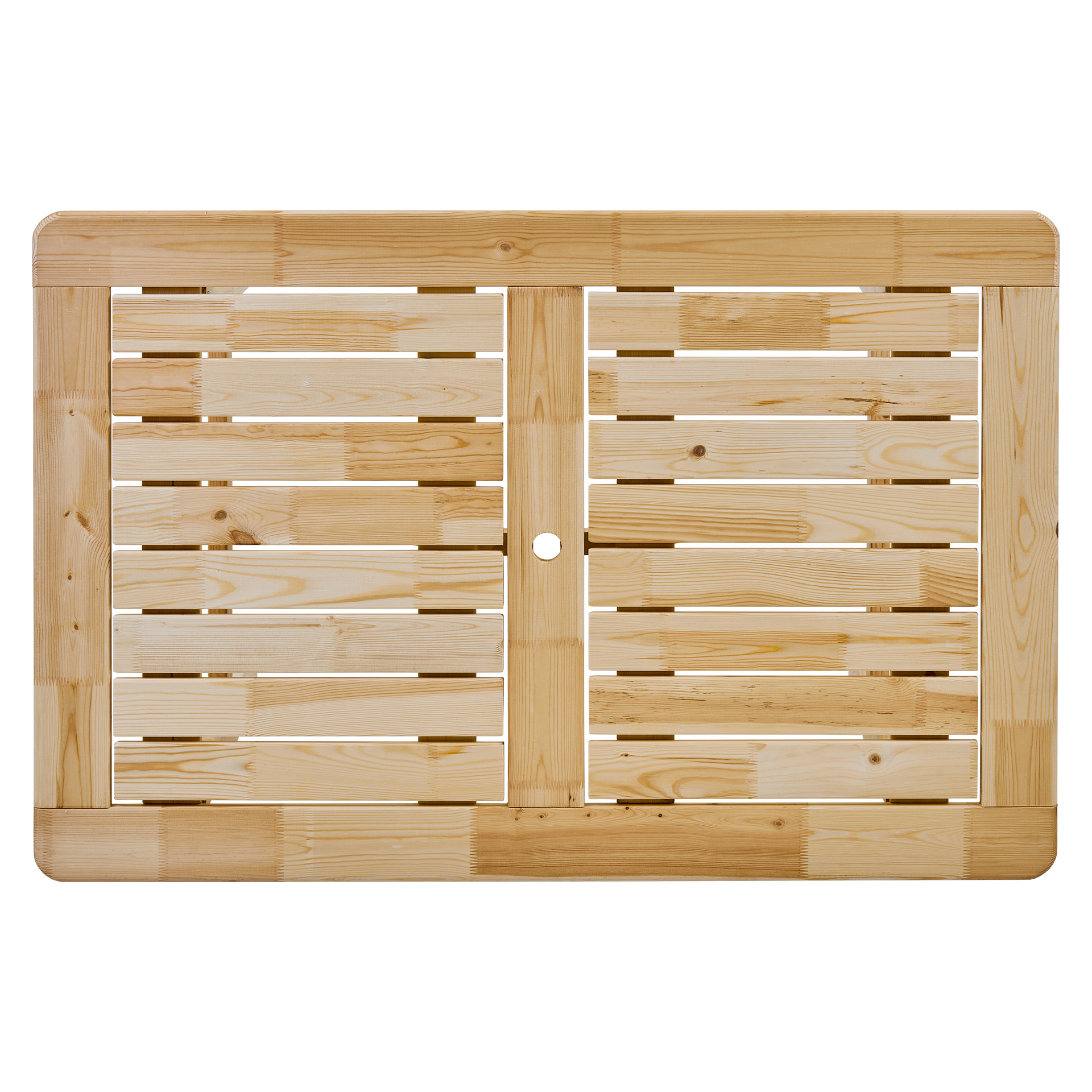 Стол СОЛО (неокрашенный).6-местный/с обвязкой столешницы /столовый /отверстие для зонта /скруглённые углы / /деталей в упак. 7шт. /каркас:25мм /ДШВ:120x80x73cm.