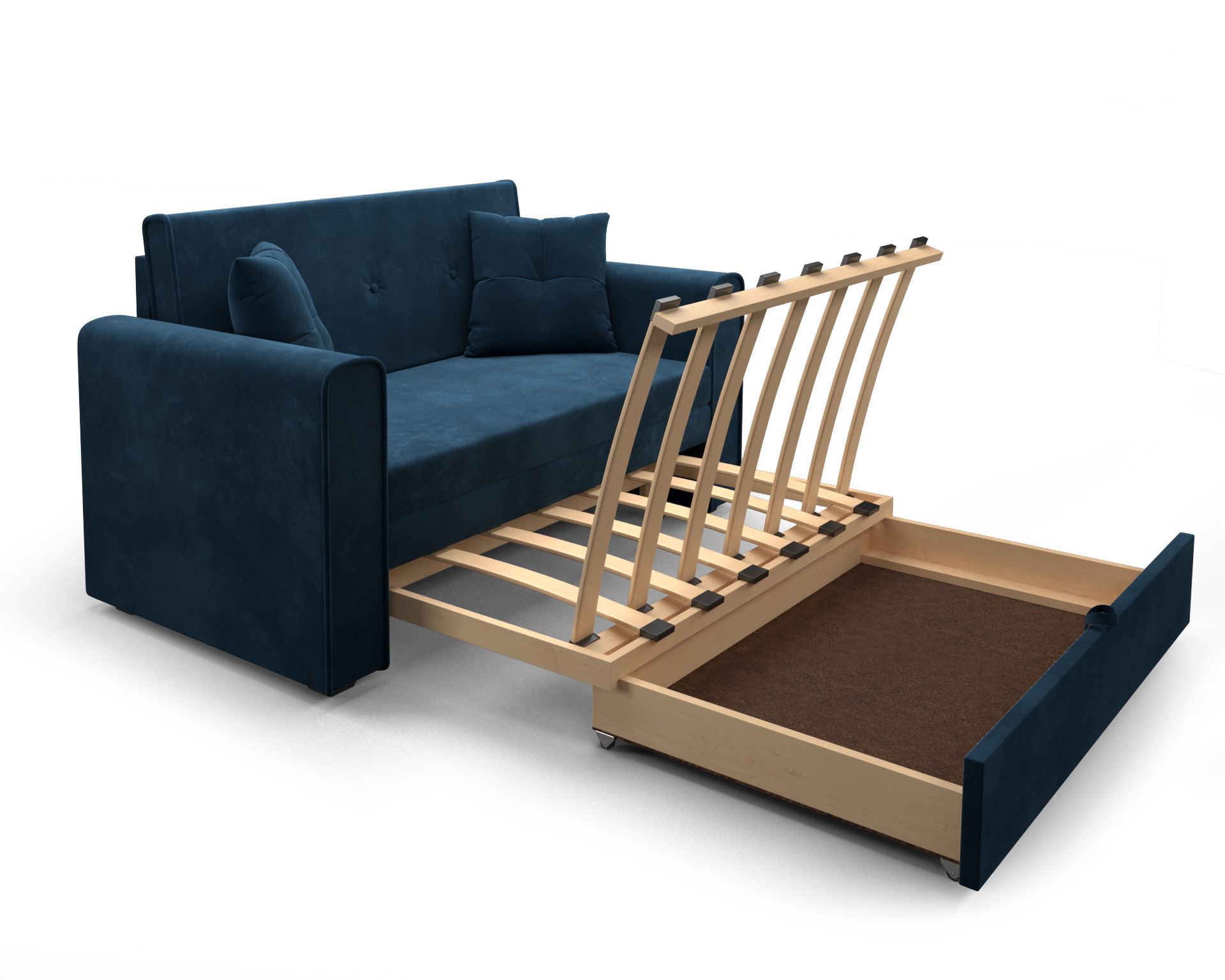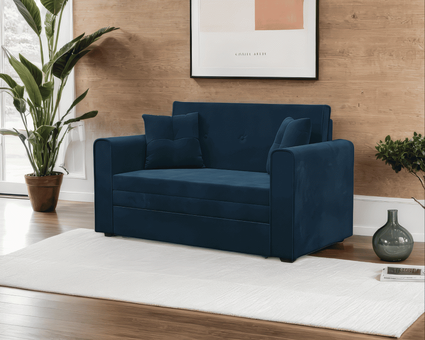 Диван прямой выкатной Санта (Велюр) (Синий) Код I0000348373