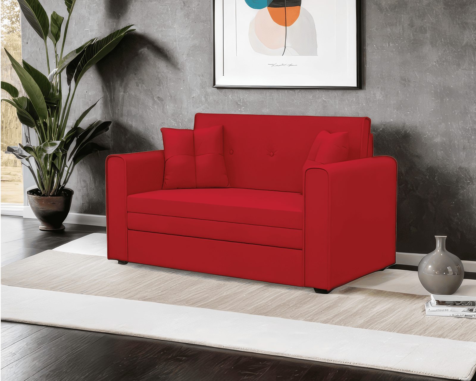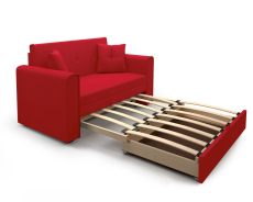 Прямой диван «Санта» - компактный двухместный диван с выкатной системой раскладки. Обладает размером 153х90х82 см и уютным дизайном. Легким движением руки диван превращается в спальное место размером 120х190 см. В комплект входит две маленькие декоративные подушки. Высокие подлокотники и спинка обеспечивает комфортные условия отдыха.