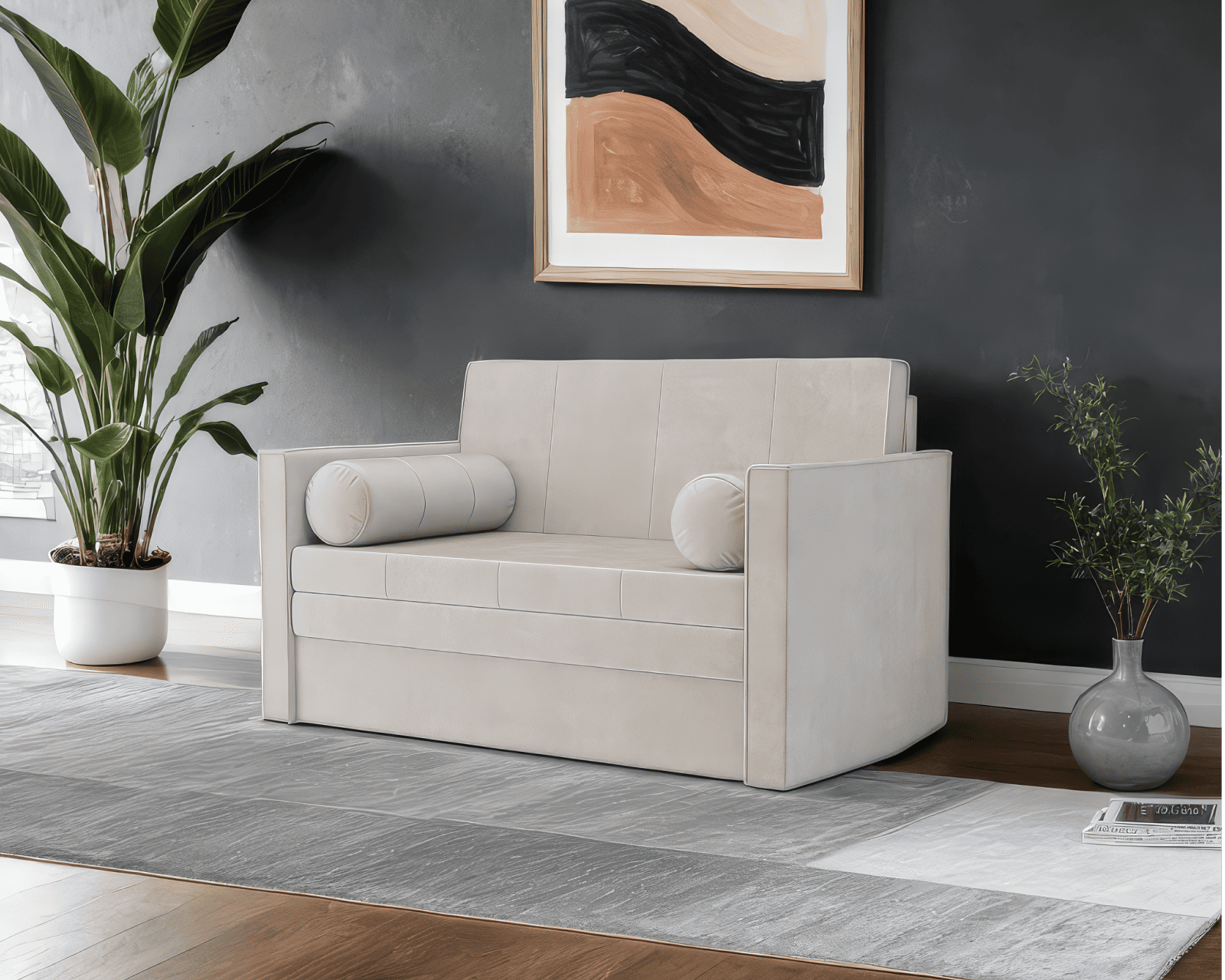 Прямой диван «Санта №2» - компактный двухместный диван с выкатной системой раскладки. Обладает размером 147х88х82 см и уютным дизайном. Легким движением руки диван превращается в спальное место размером 120х190 см. В комплект входит две маленькие декоративные подушки. Высокие подлокотники и спинка обеспечивает комфортные условия отдыха.