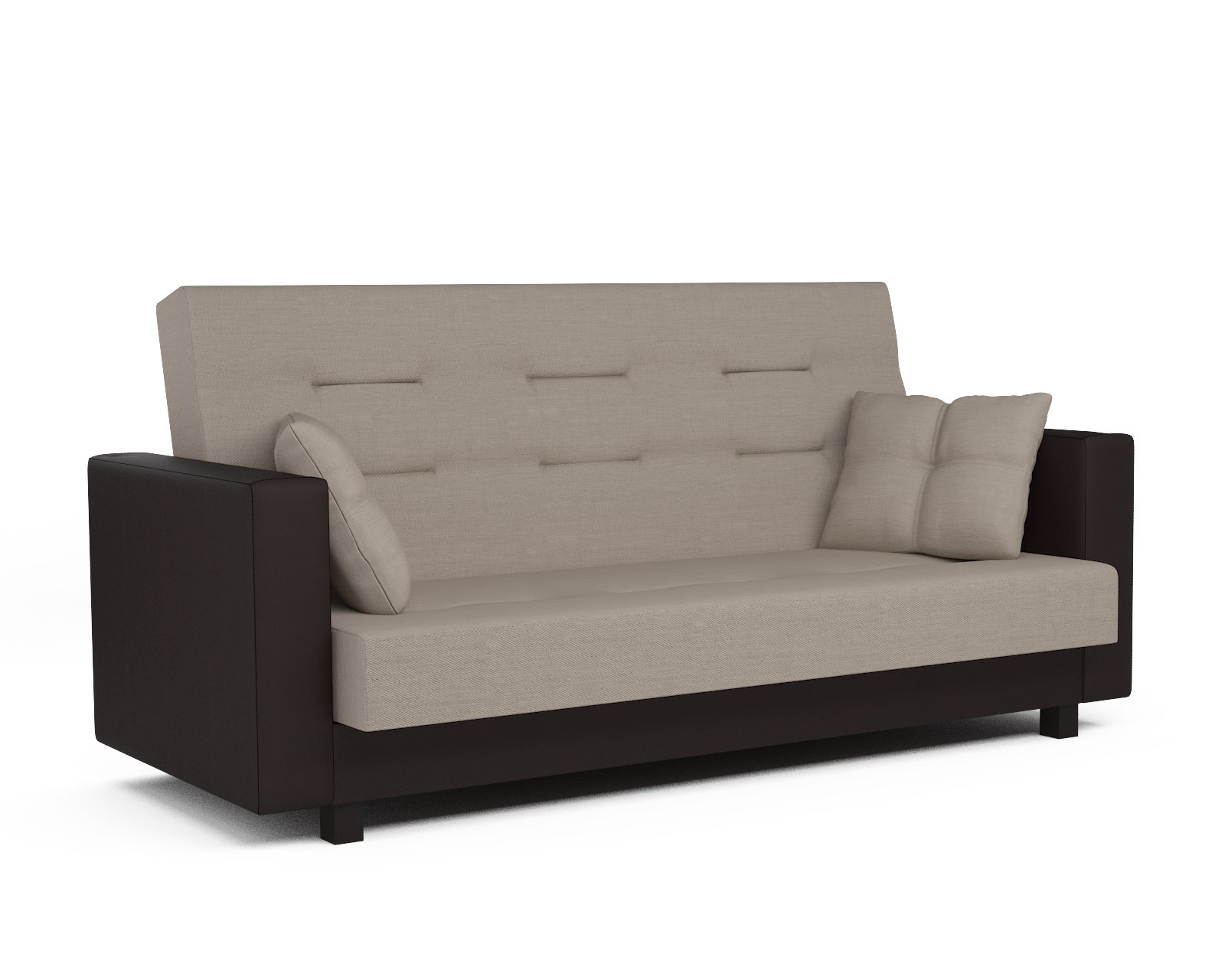 Диван прямой «Книжка» - комфортный диван с глубоким сиденьем и узкими прямыми подлокотниками, которые позволяют устанавливать диван вплотную к стене, что важно для небольших помещений. Габариты 210х90х96 см вмещают до четырех человек.