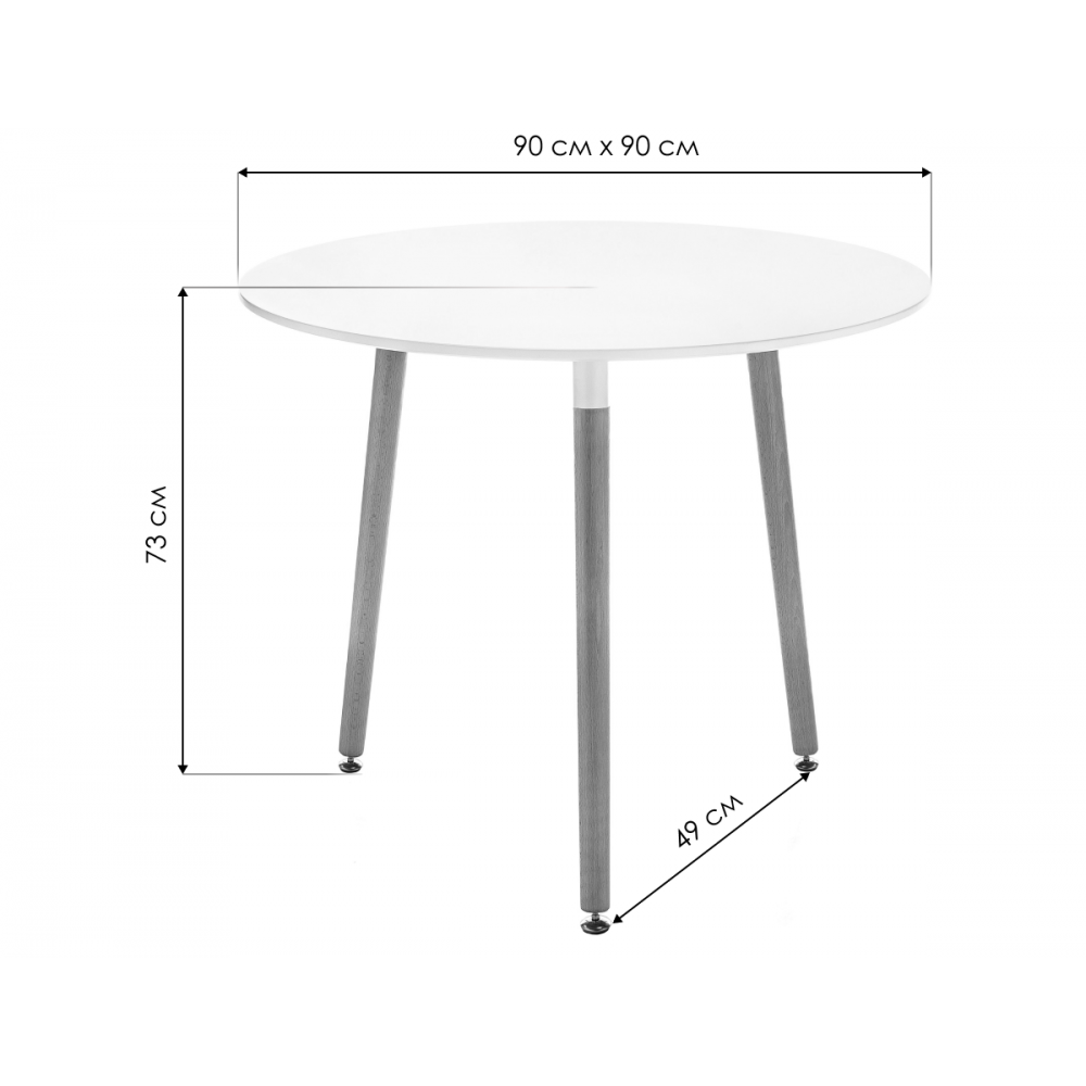 Материал каркаса - Массив бука; Материал ножек - Массив бука; Материал столешницы - МДФ; Цвет каркаса - Натуральный; Цвет ножек - Натуральный; Цвет столешницы - Белый; Ширина - 90; Высота - 73; Длина - 90.