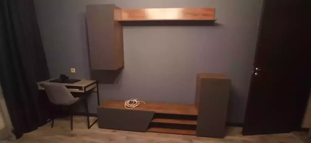 Стенка выглядит просто изумительно у меня просто слов нет, чтобы передать свои эмоции, когда мы ее поставили! Все так ладно в ней, продуманно. Большая тумба под телевизор, навесной шкаф сейчас вообще мой любимый предмет мебели, я очень много полезных предметов туда убрала. Полка небольшая и большой вес не держит, но и она тут пригодилась, чтобы дополнить. Прекрасное качество и не менее прекрасный дизайн!