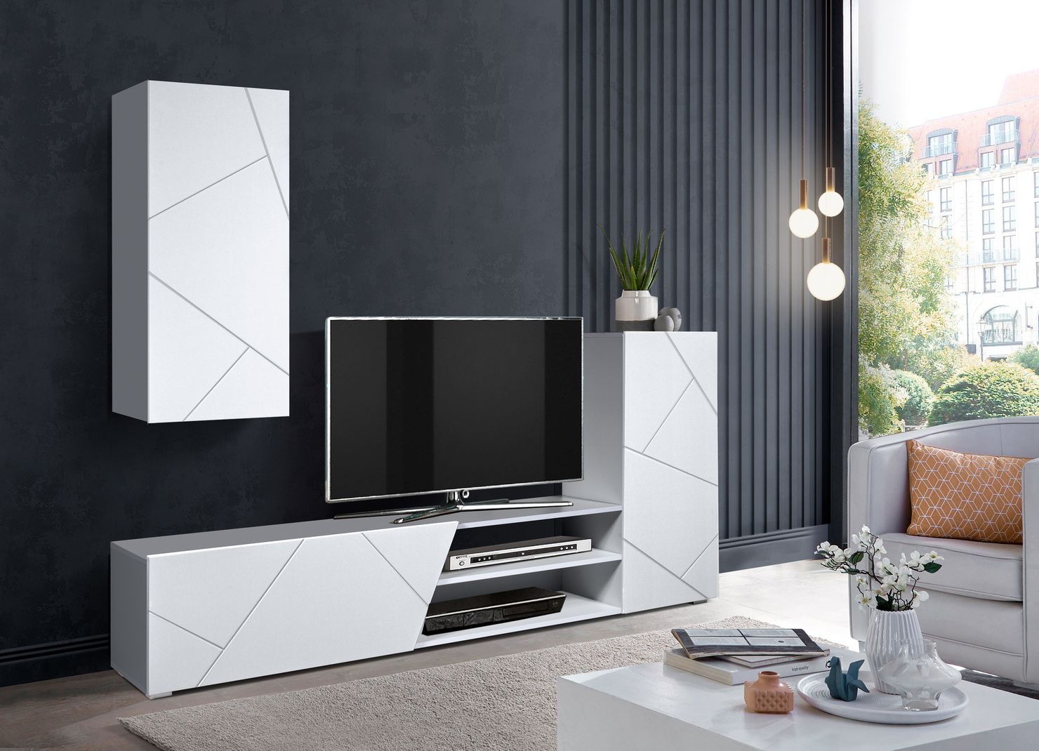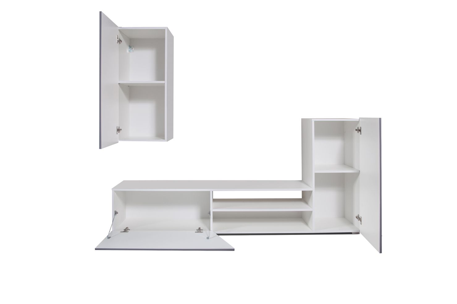 навесной шкаф с полками и модуль под ТВ с тумбой.