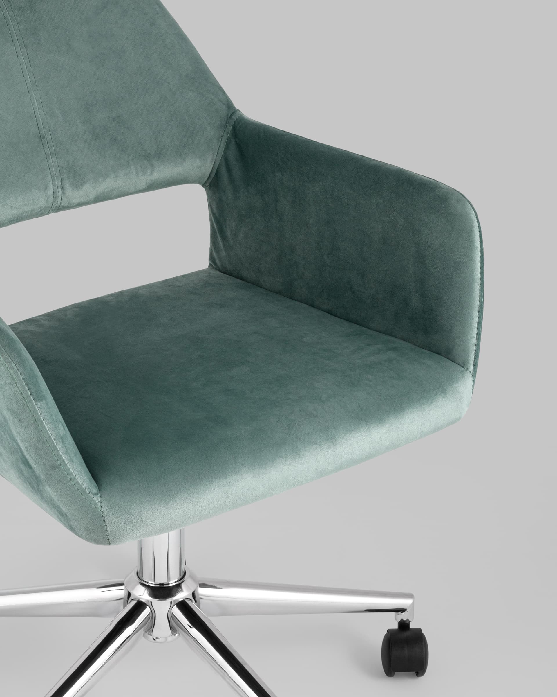 Современное и функциональное офисное кресло. Дизайнерская форма добавит помещению уюта и стиля, а обивка из велюра выглядит очень изысканно.