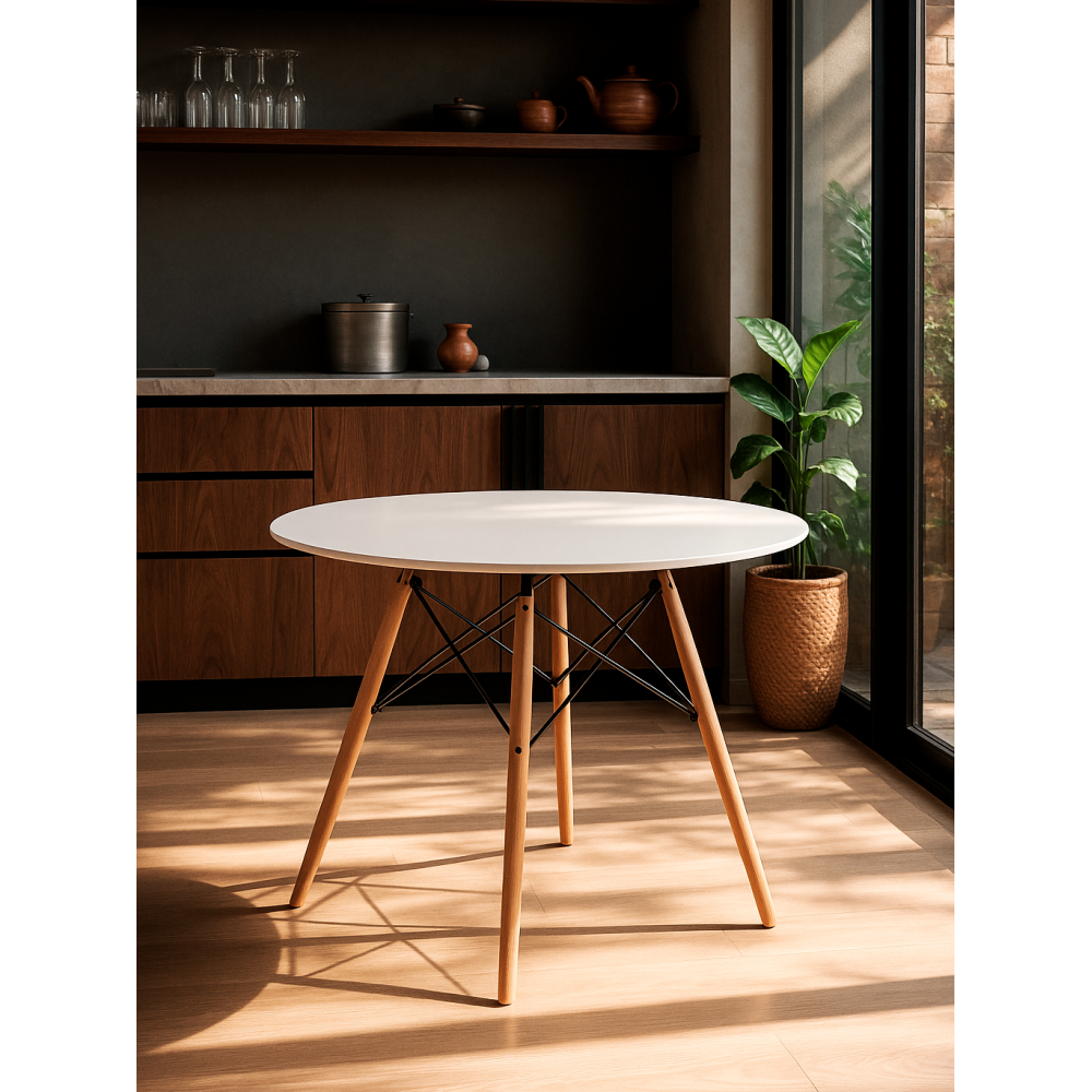 Стол Table с круглой столешницей - это прекрасное решение для тех, кто ищет стильный и функциональный стол. Его столешница круглой формы выполнена из МДФ, что делает ее легкой и прочной в использовании. Каркас стола изготовлен из металла и массива бука, что придает ему стабильность и надежность. Этот стол - идеальное решение для тех, кто ищет мебель, сочетающую в себе современный дизайн и высокое качество материалов. Его элегантный дизайн и удобная форма делают его идеальным для использования как в домашней, так и в офисной среде.