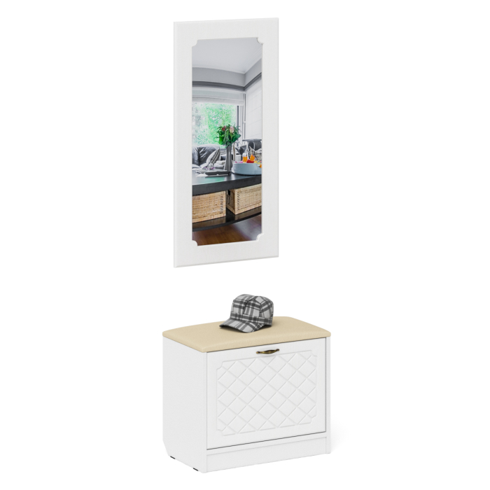 Отзывы о Столплит Обувница с мягким сиденьем с зеркалом П-6 МДФ фрезеровка ромб Белый