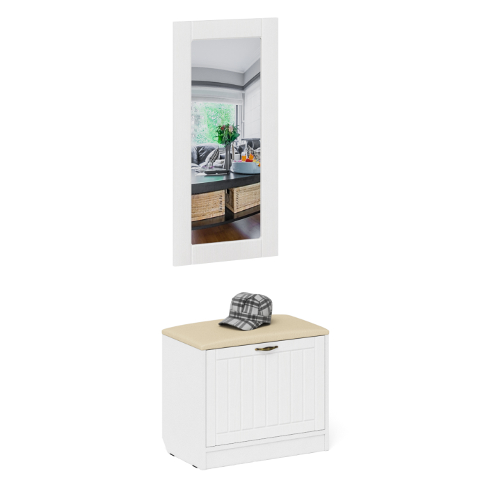 Обувница с мягким сиденьем с зеркалом П-6 МДФ фрезеровка прованс Код I0000351188