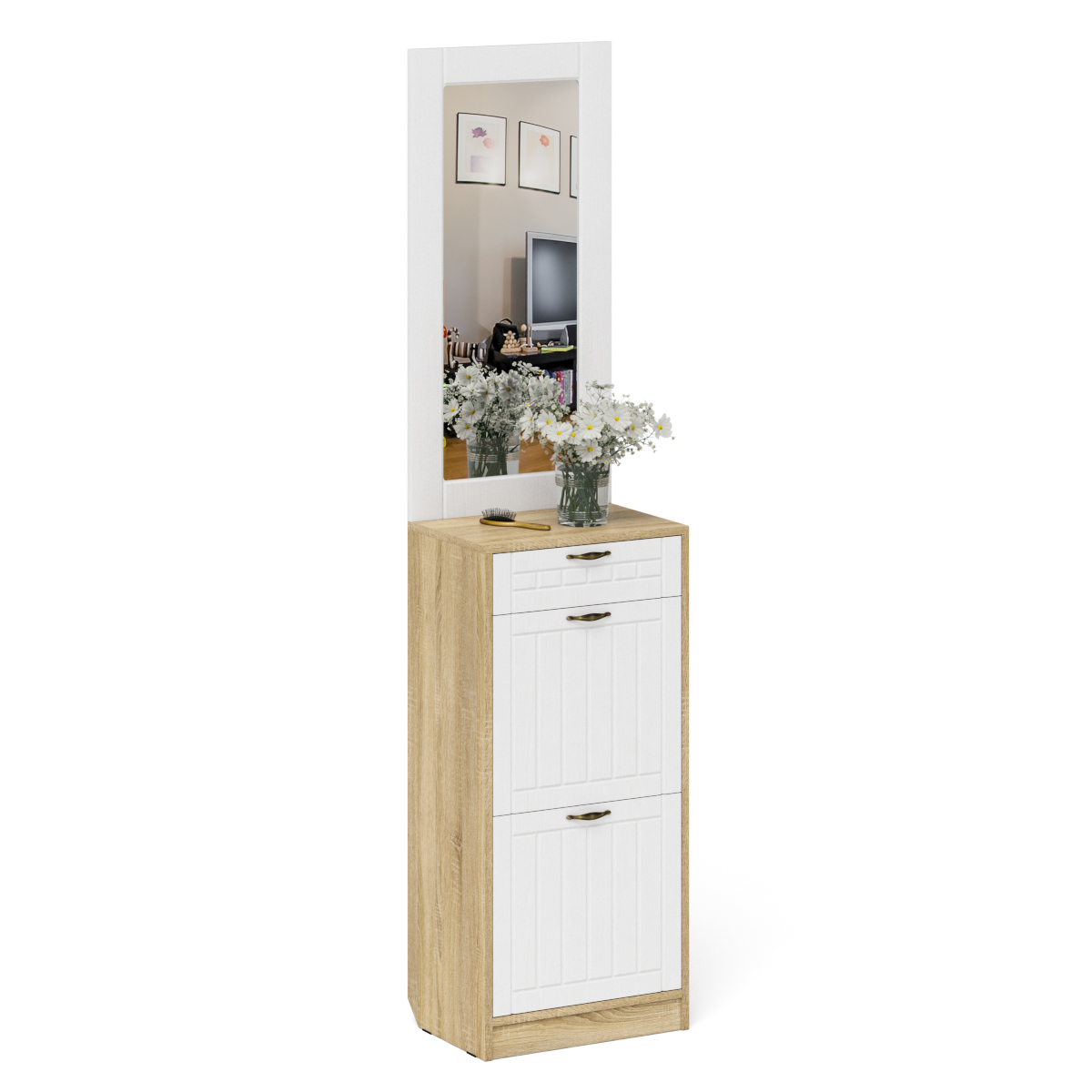 Тумба для обуви 2 секции с зеркалом П-6 - простая, аккуратная и практичная мебель для современного интерьера.