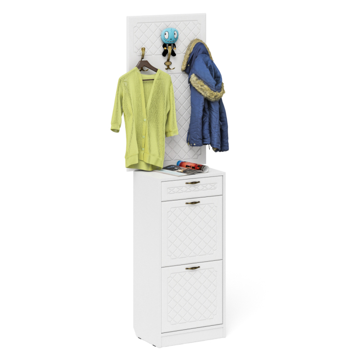 Отзывы о Столплит Обувница 2 секции с ящиком и вешалкой для одежды П-6 фрезеровка ромб Белый
