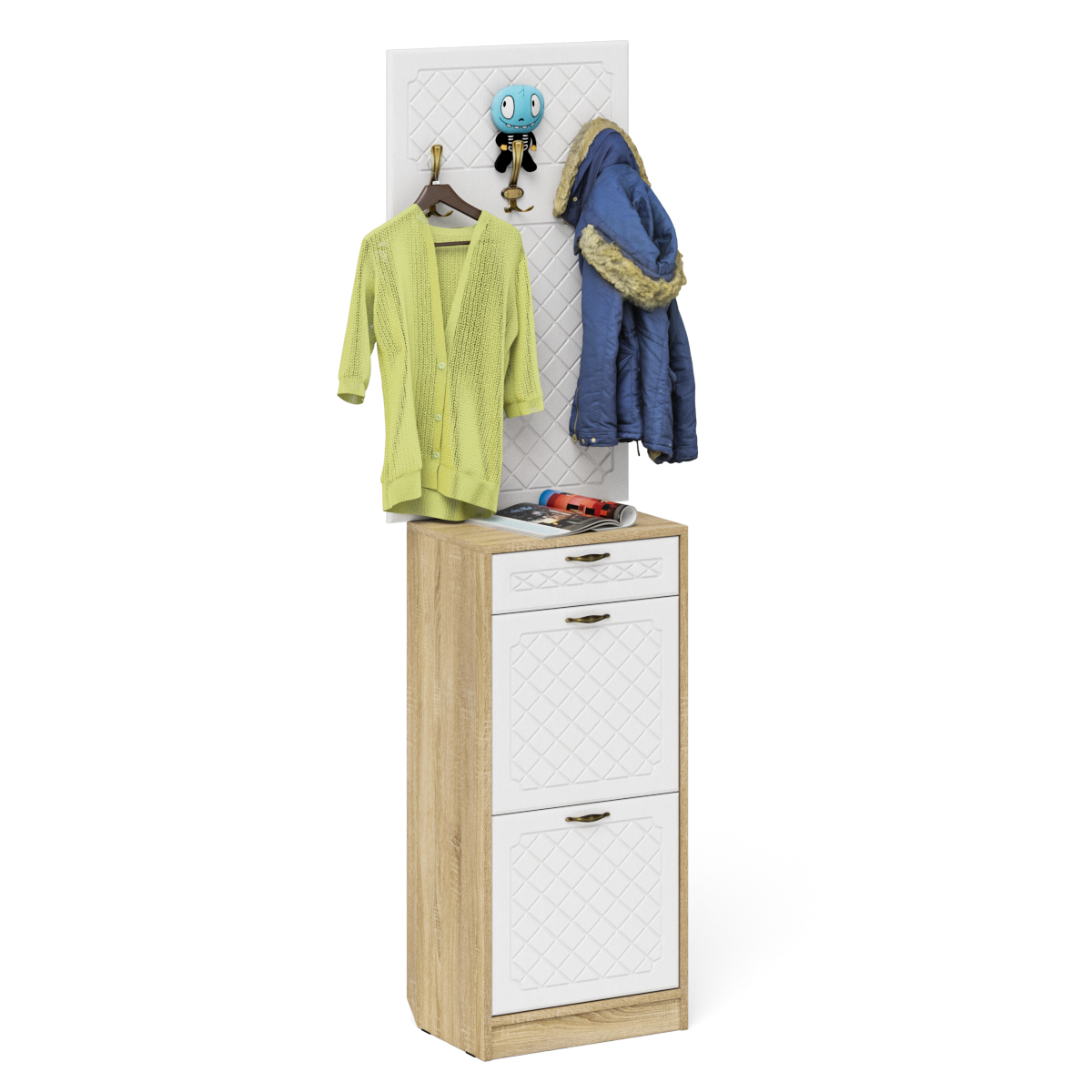 Отзывы о Столплит Обувница 2 секции с ящиком и вешалкой для одежды П-6 фрезеровка ромб Белое дерево/дуб сонома