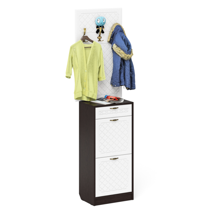 Отзывы о Столплит Обувница 2 секции с ящиком и вешалкой для одежды П-6 фрезеровка ромб Белый/Венге