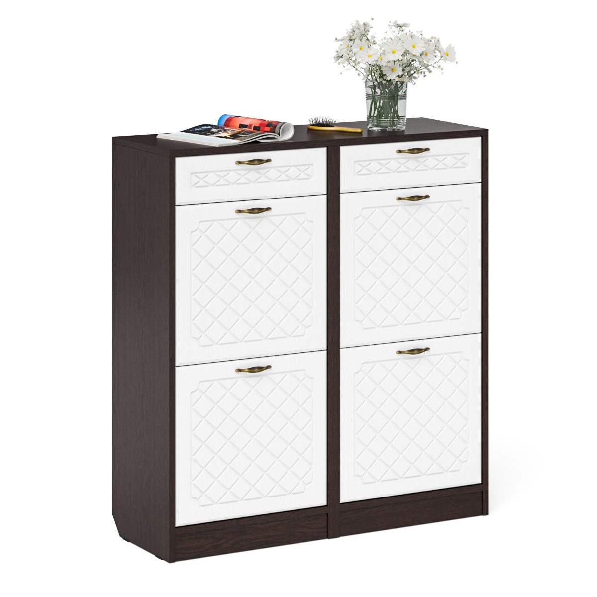 Отзывы о Столплит Две тумбы для обуви 2 секции с выдвижным ящиком МДФ фрезеровка ромб Белый/Венге