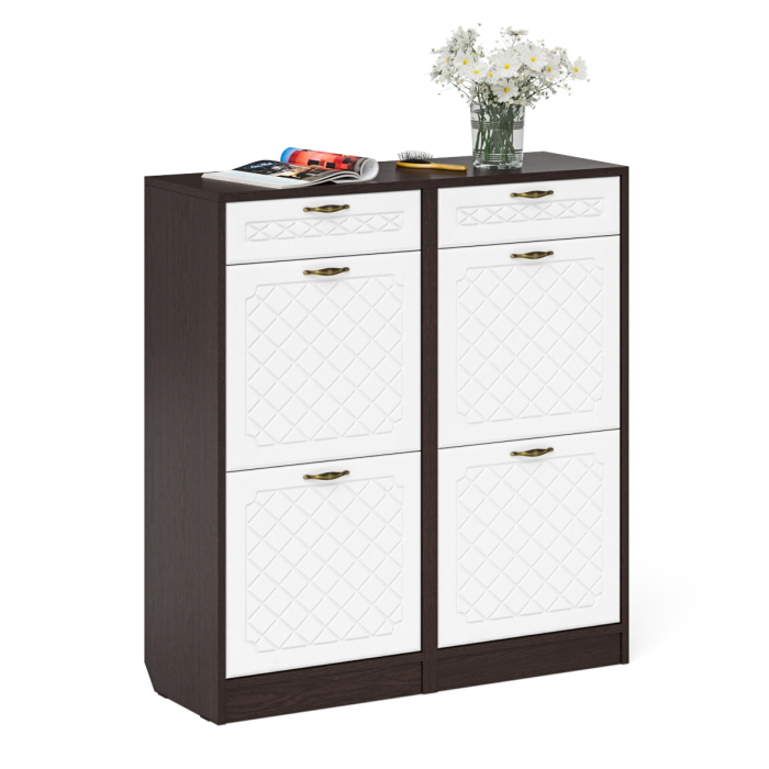 Две тумбы для обуви 2 секции с выдвижным ящиком - простая, аккуратная и практичная мебель для современного интерьера.