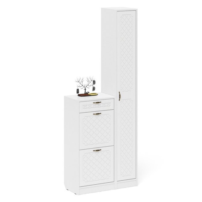 Отзывы о Столплит Тумба для обуви в прихожую с пеналом П-6 МДФ фрезеровка ромб Белый