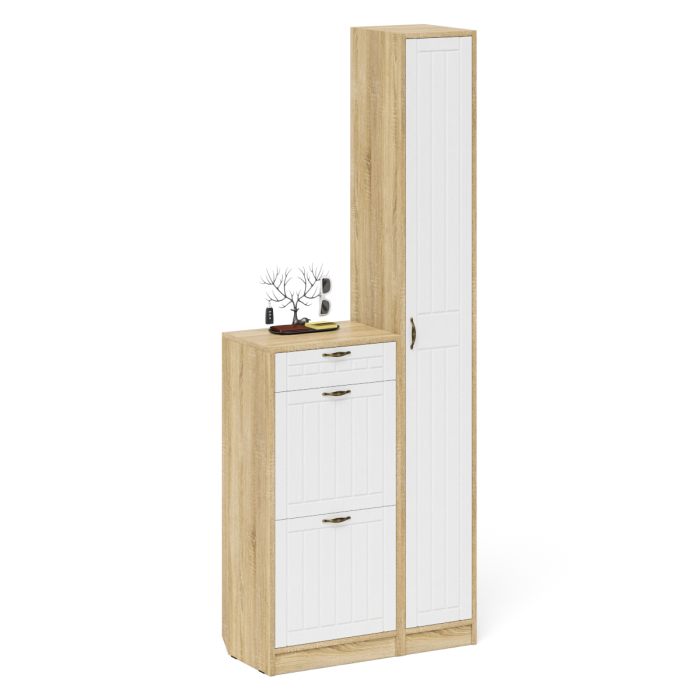 Отзывы о Столплит Тумба для обуви в прихожую с пеналом П-6 МДФ фрезеровка прованс Белое дерево/дуб сонома
