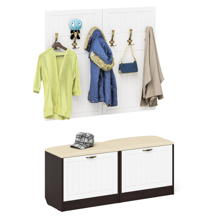 Отзывы о Столплит Две обувницы с мягким сиденьем с двумя вешалками для одежды П-6 МДФ фрезеровка прованс Белый/Венге