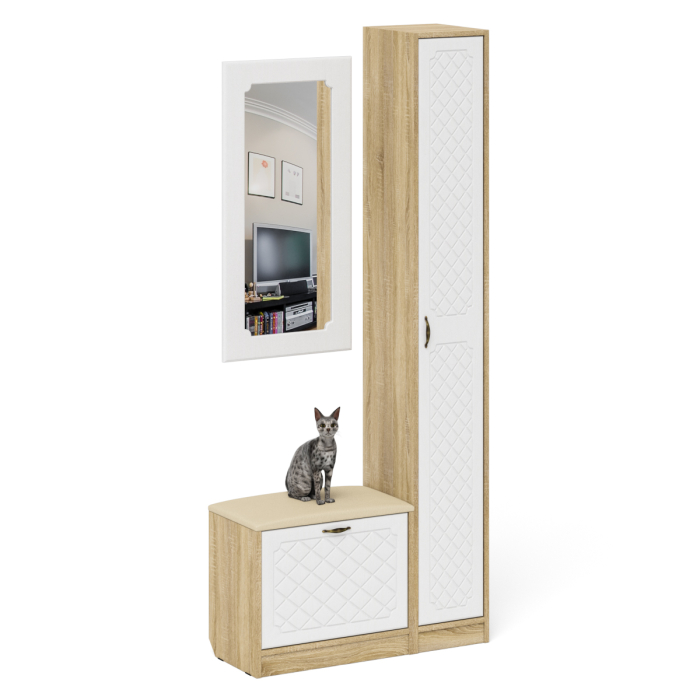 Отзывы о Столплит Обувница с сиденьем зеркало и пенал П-6 МДФ фрезеровка ромб Белое дерево/дуб сонома