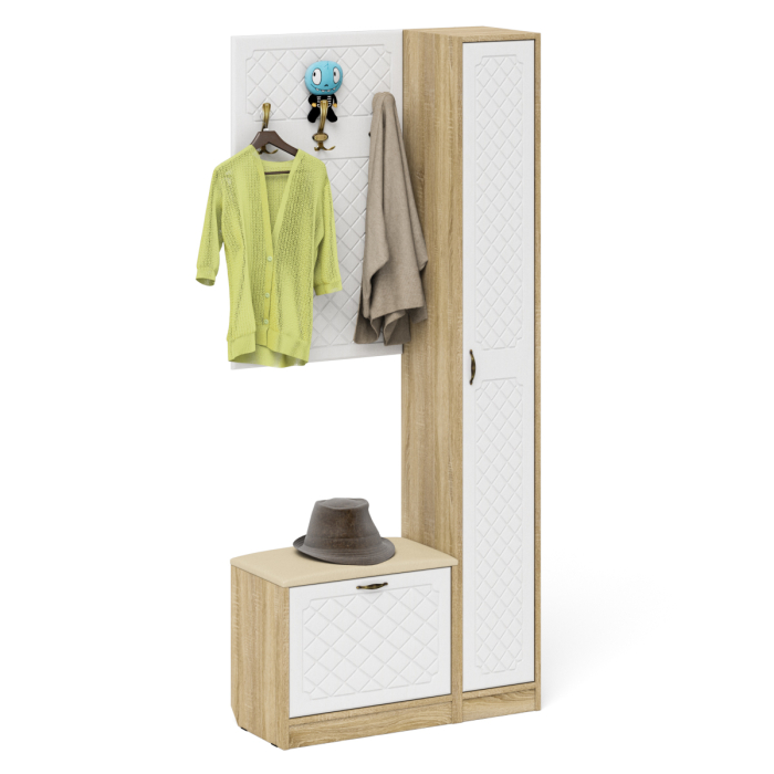 Отзывы о Столплит Обувница с мягким сиденьем вешалка с крючками и пенал П-6 МДФ фрезеровка ромб Белое дерево/дуб сонома