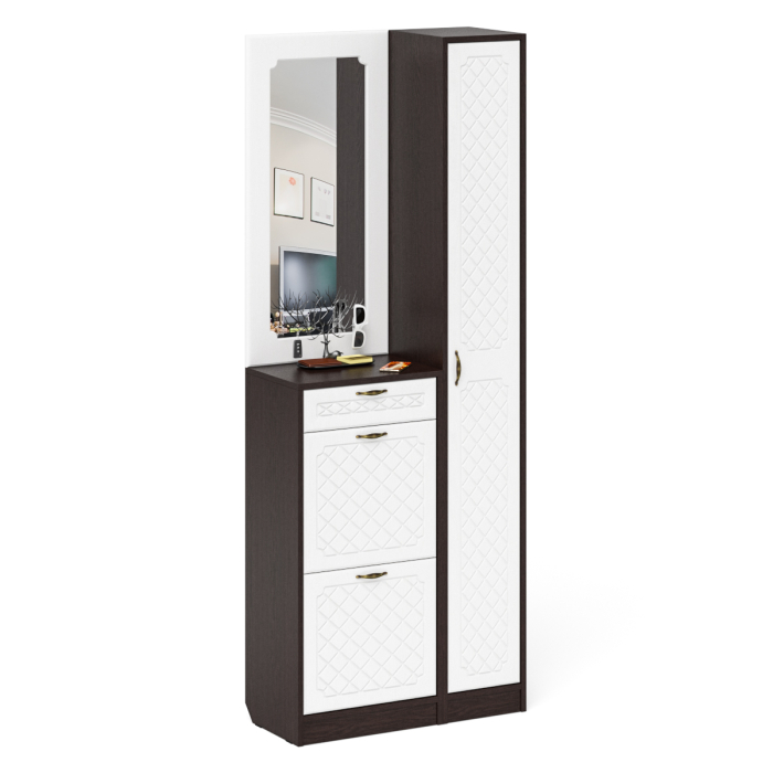 Отзывы о Столплит Высокая обувница с зеркалом и пеналом П-6 № 23 МДФ фрезеровка ромб Белый/Венге