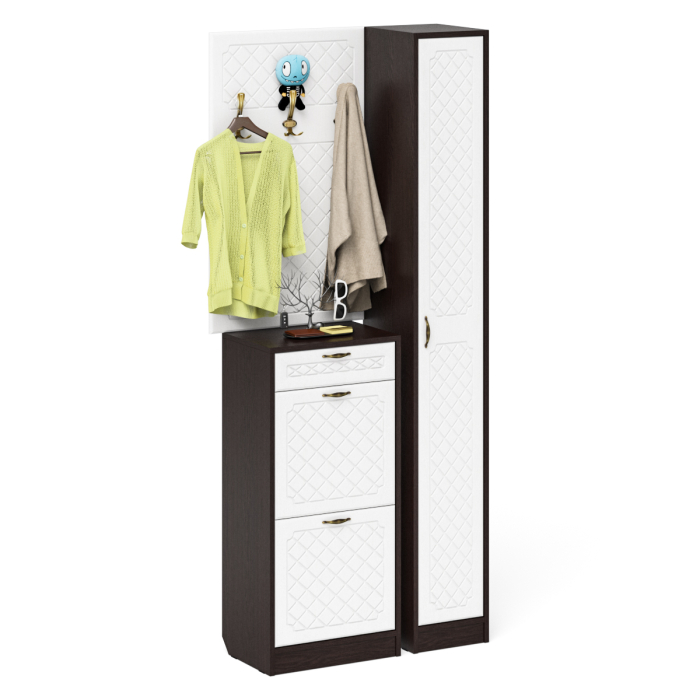 Отзывы о Столплит Тумба для обуви высокая с вешалкой и пеналом П-6 № 24 МДФ фрезеровка ромб Белый/Венге