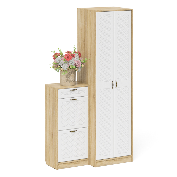Отзывы о Столплит Шкаф с тумбой для обуви 2 секции П-6 № 16 МДФ фрезеровка ромб Белое дерево/дуб сонома