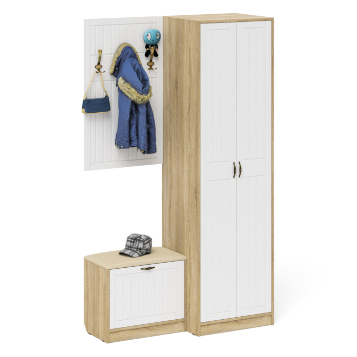 Отзывы о Столплит Шкаф в прихожую с обувницей с сиденьем и вешалкой П-6 № 12 МДФ фрезеровка прованс Белое дерево/дуб сонома